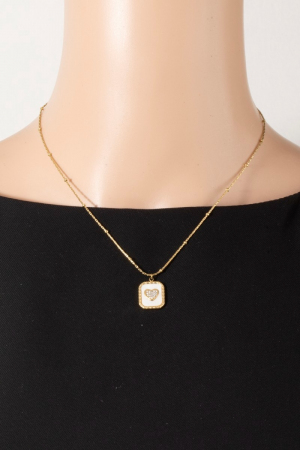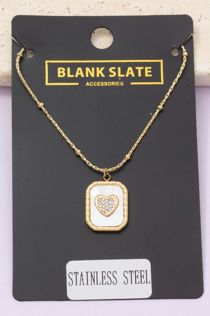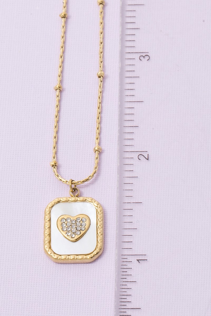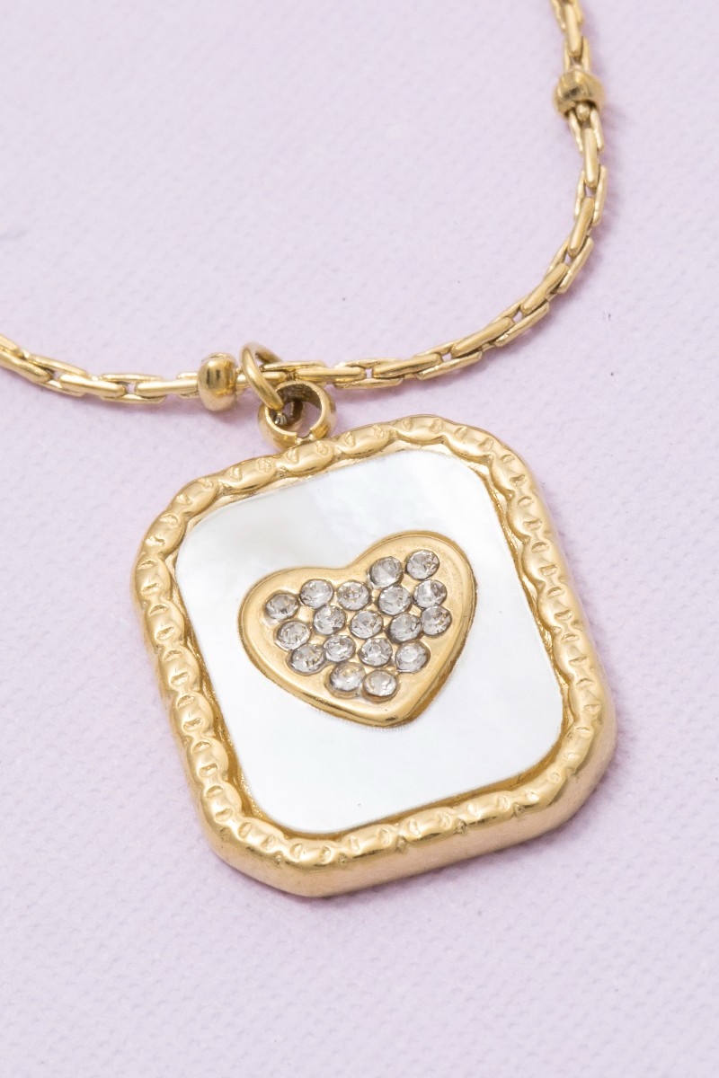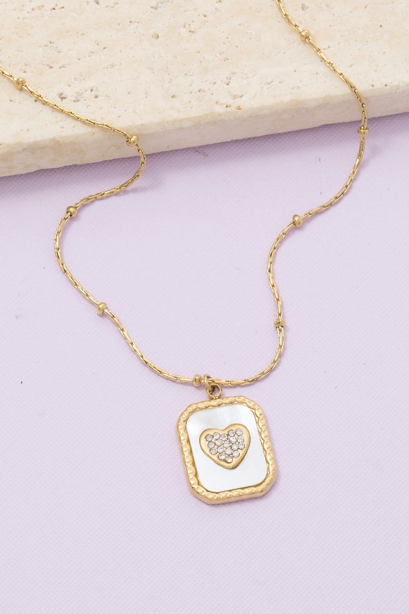 - This pendant necklace features a fashionable mother of pearl crystal heart rectangle style. Immerse yourself in the details of design, as this pendant necklace effortlessly becomes a conversation starter.