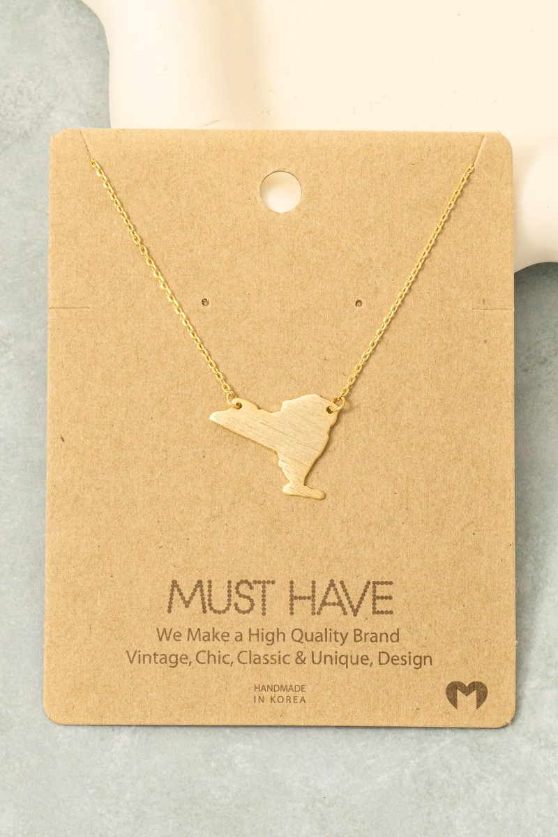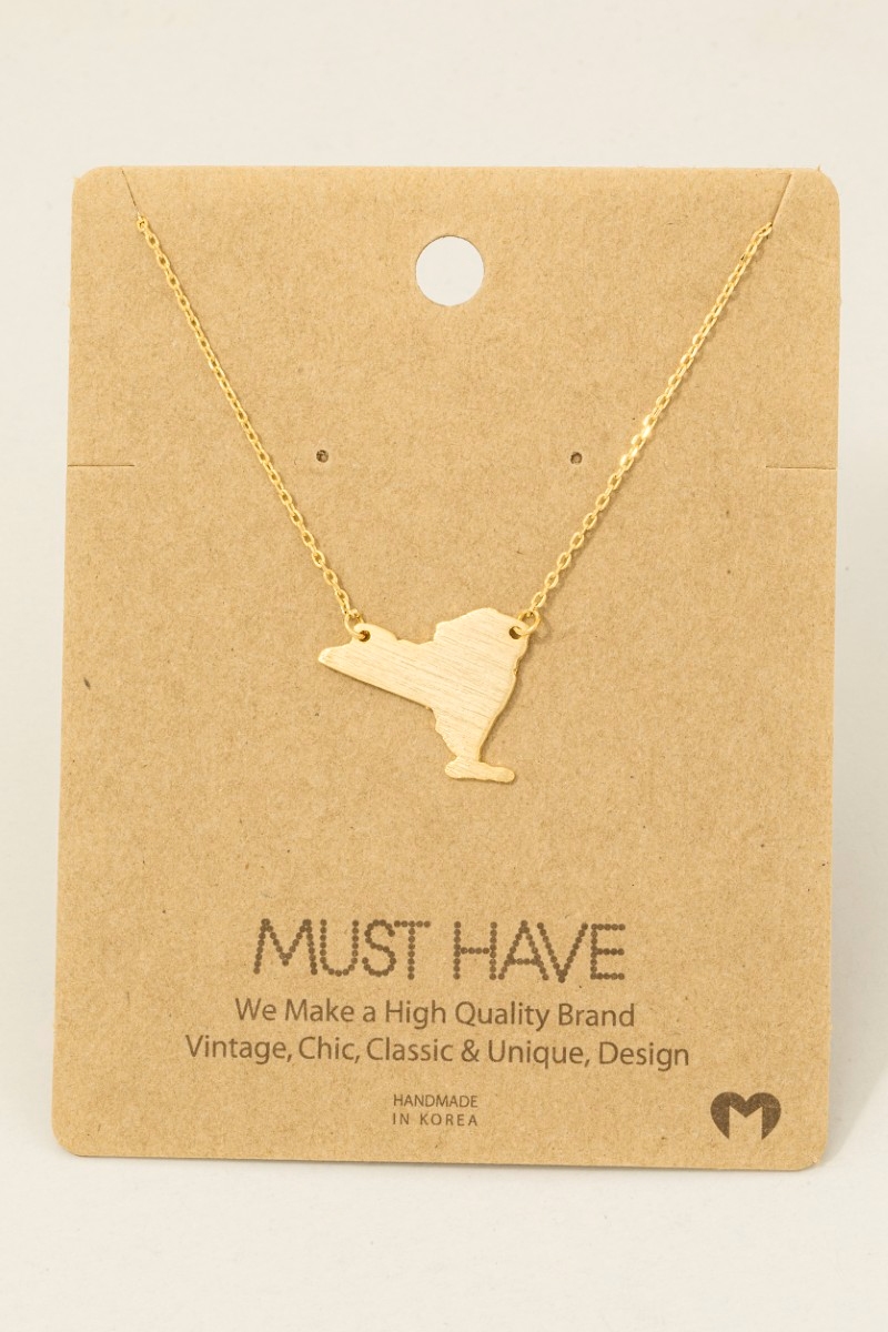 • This trending necklace brings a unique new york state pendant necklace style. Revel in the intricate design that effortlessly distinguishes this trending necklace, making it a statement piece.