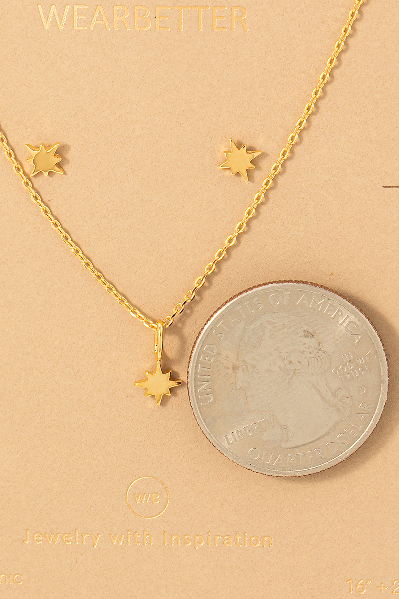 Gold Dipped Cz Pave Stars Moon Station Charms Necklace