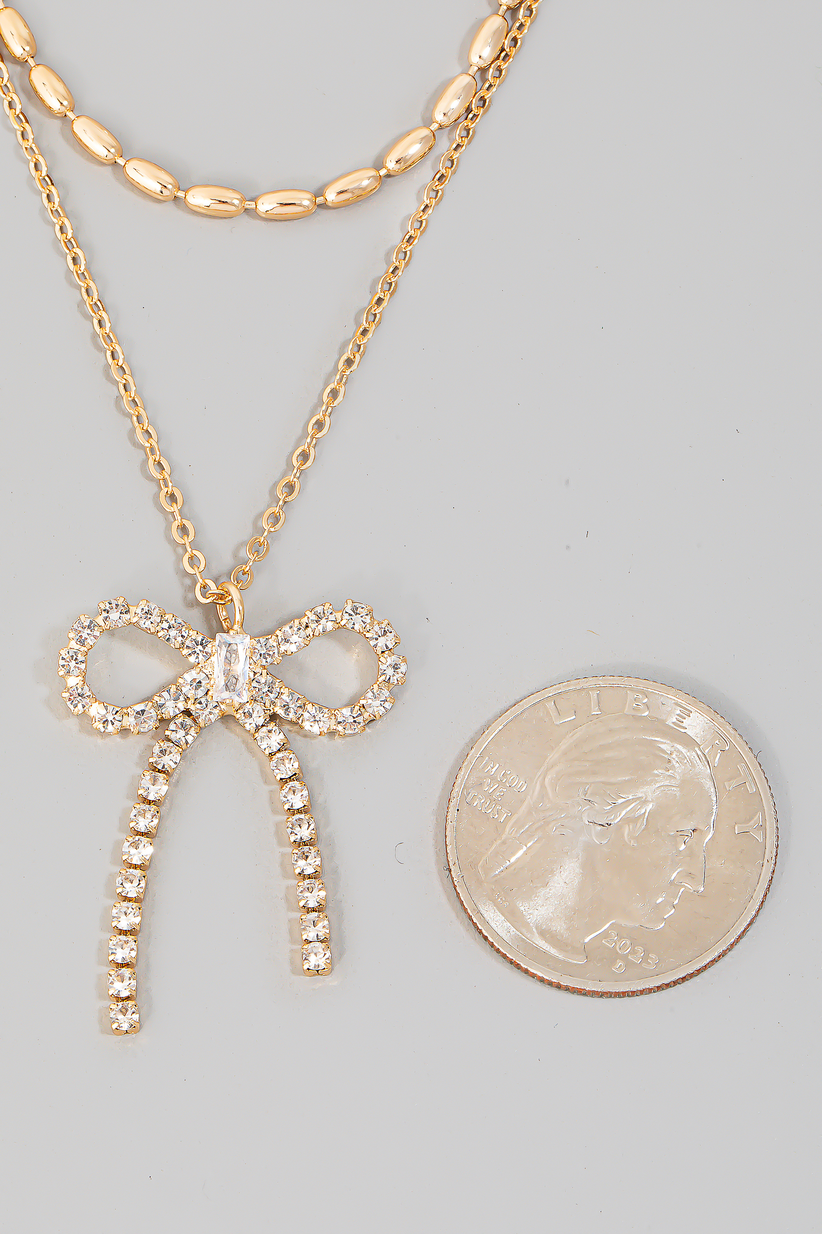 - This layered necklace introduces a unique pave ribbon bow pendant set style. Immerse yourself in fashion finesse with this statement layered necklace.