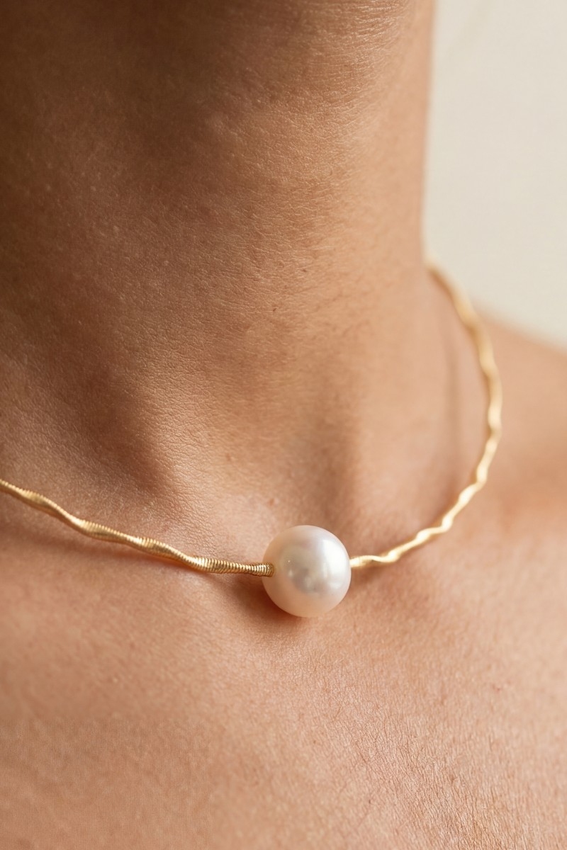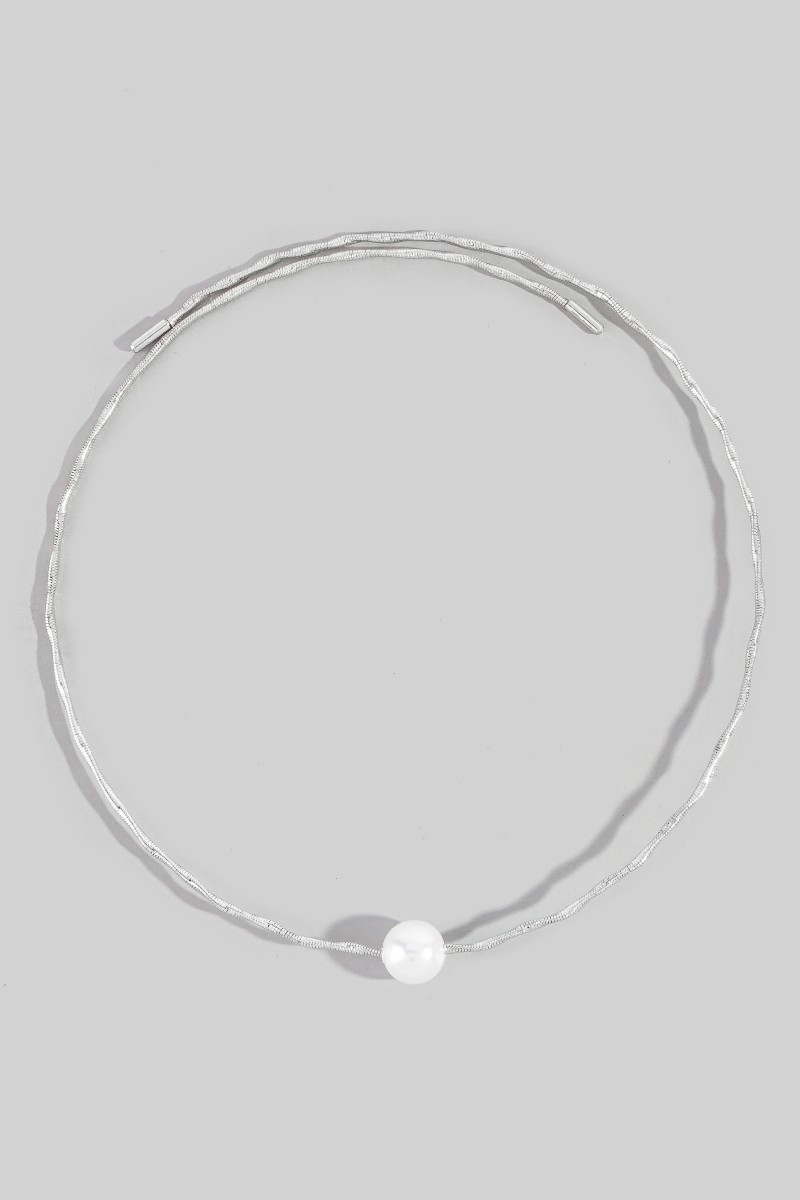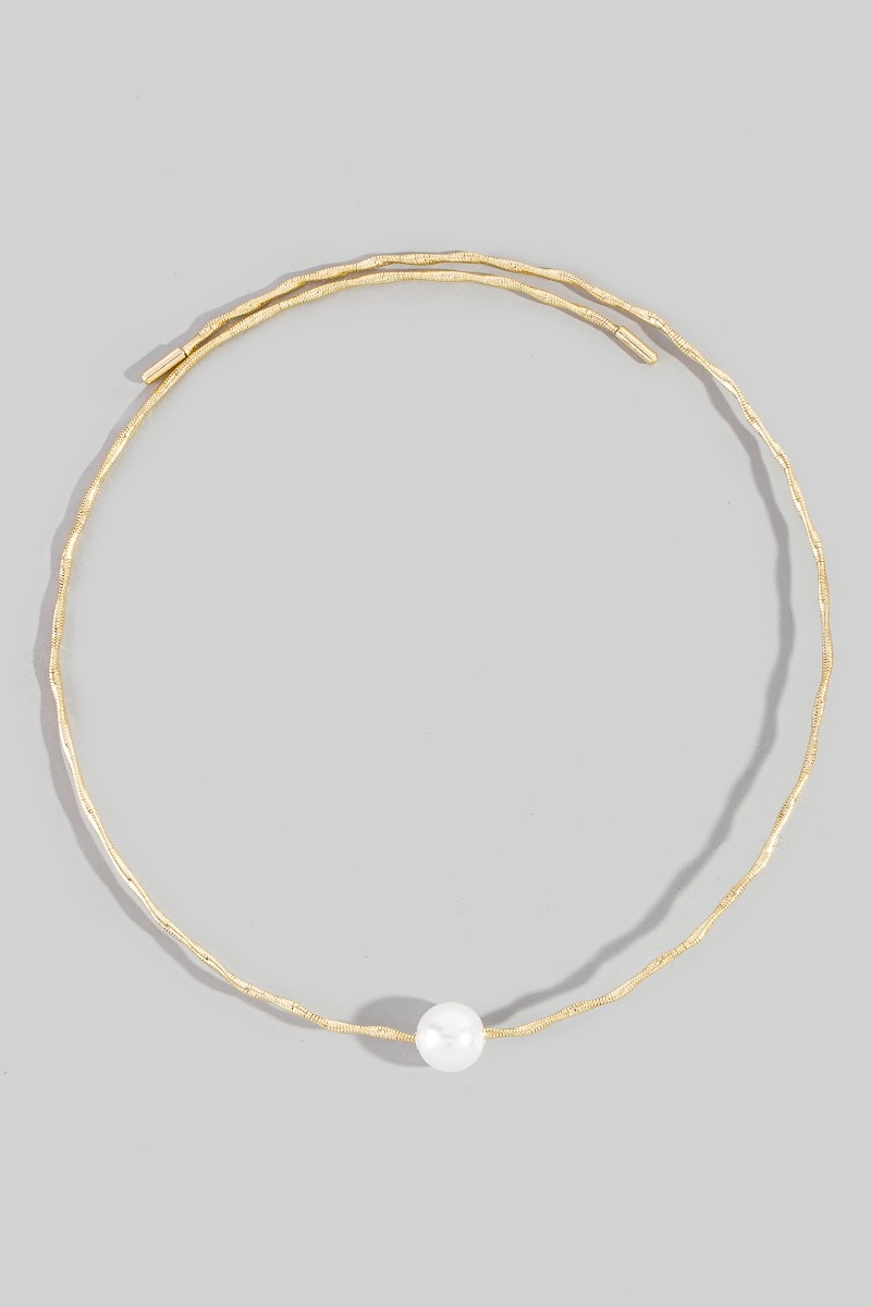 - This necklace introduces a unique pearl bead twisted wire choker style. Experience a subtle blend of modernity and classic charm as this necklace effortlessly adorns your ensemble.
