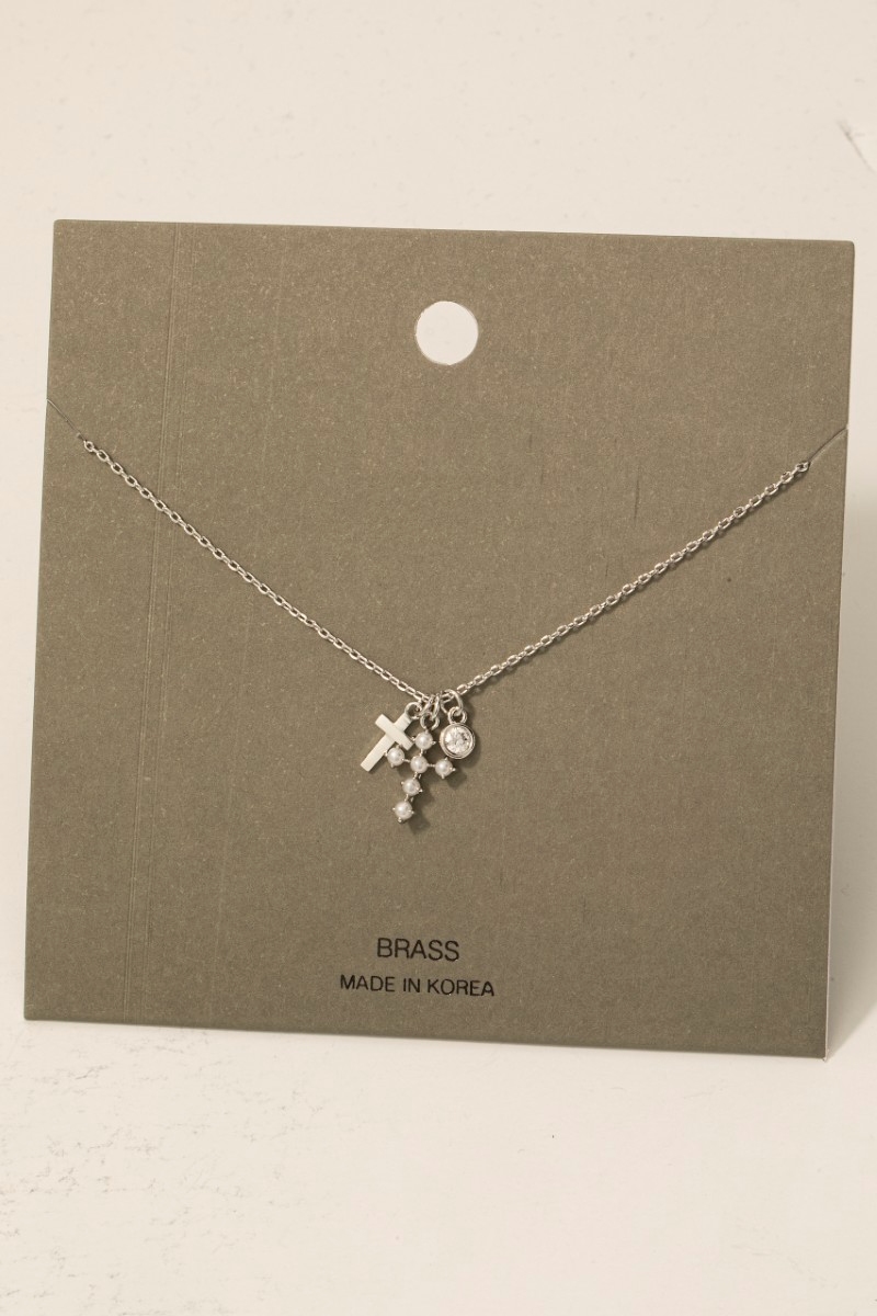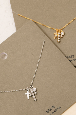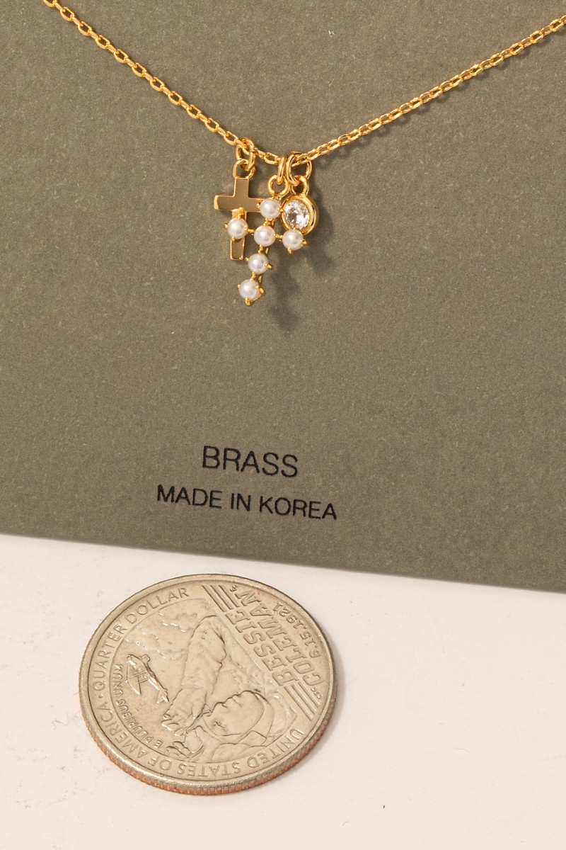 • This chain necklace brings a stunning pearl cross and gem charms style. Redefine your look effortlessly with this standout, on-trend piece.