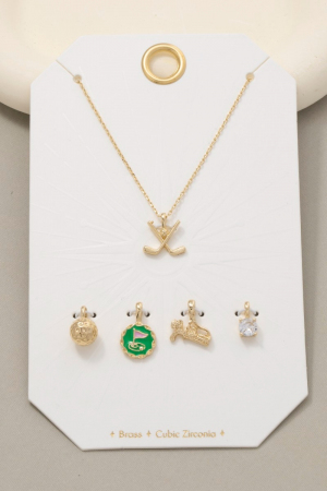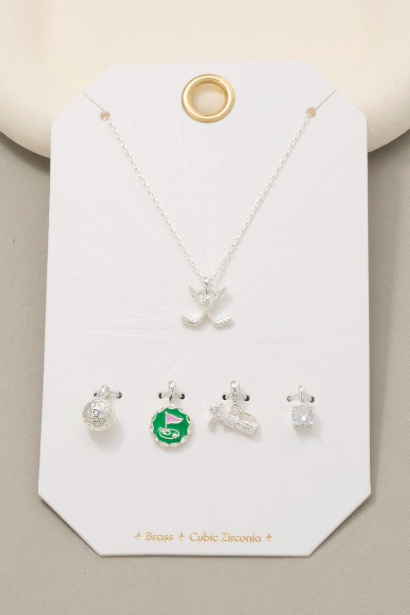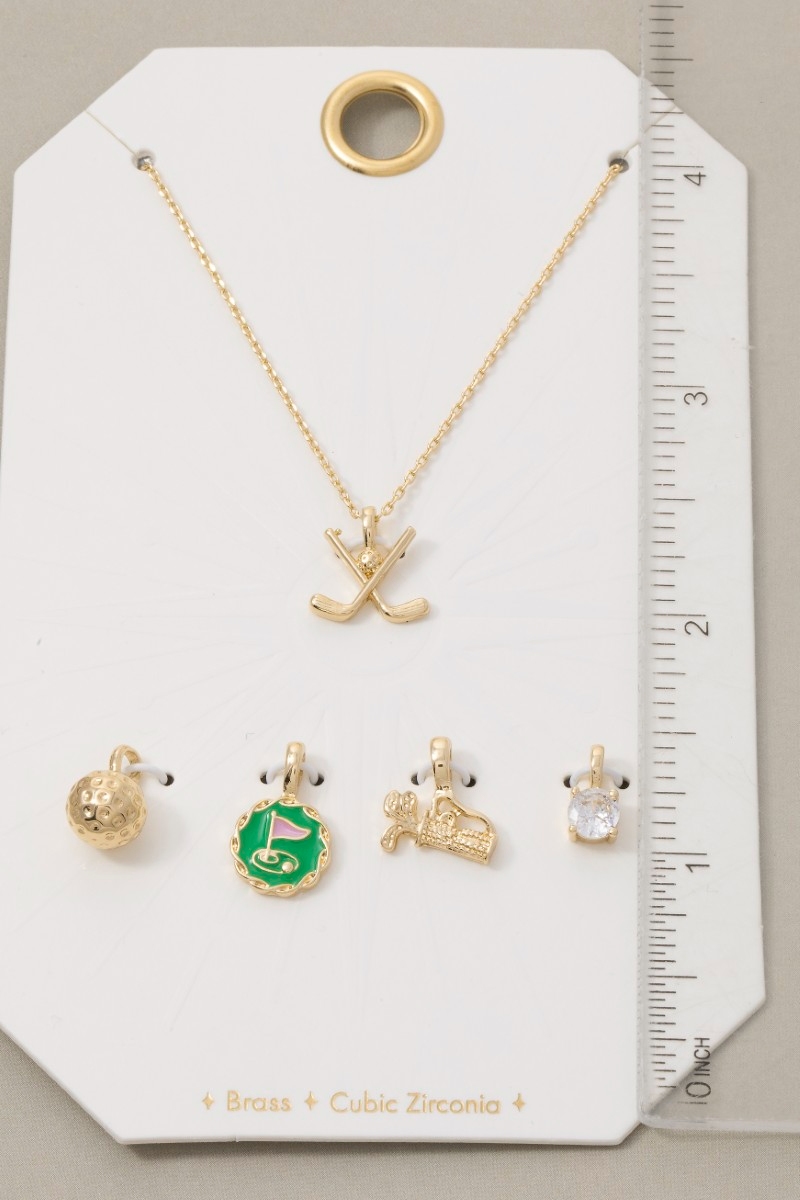- This necklace brings a luxurious assorted five piece golf charms style. Savor the craftsmanship that goes beyond the ordinary, as this necklace effortlessly captivates attention.