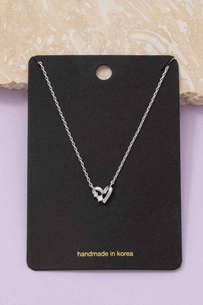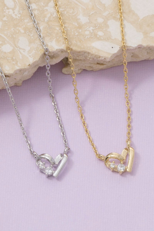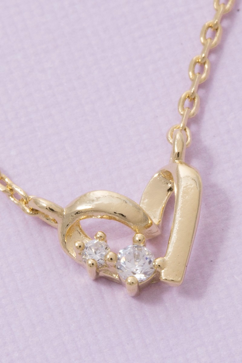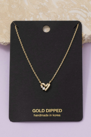 Gold Dipped Cz Studded Heart Pendant Necklace