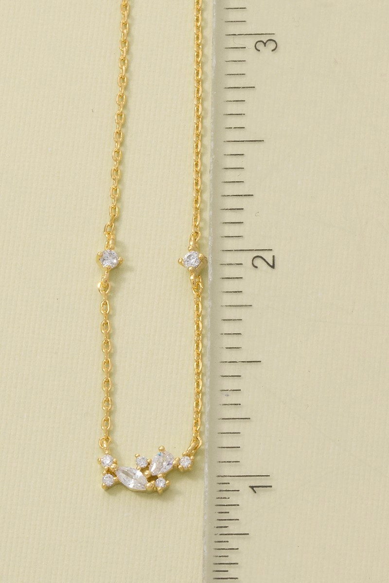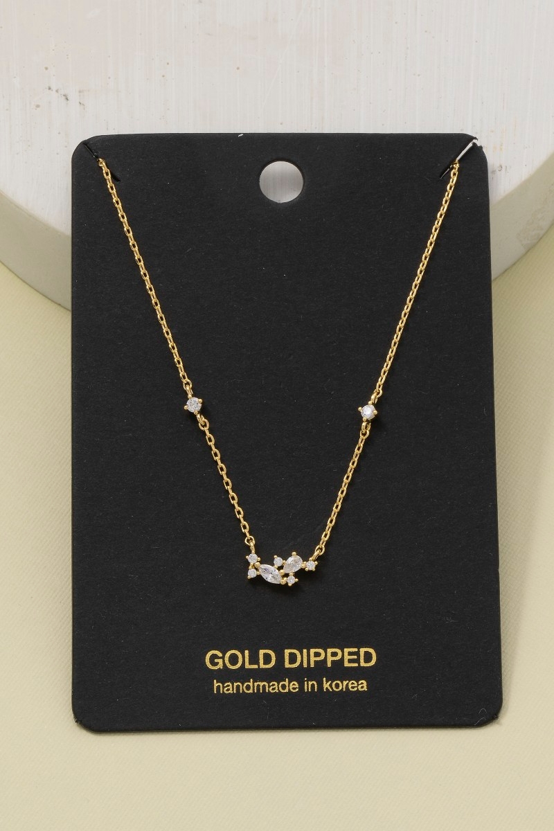 Gold Dipped Clover Cz Station Charms Chain Necklace