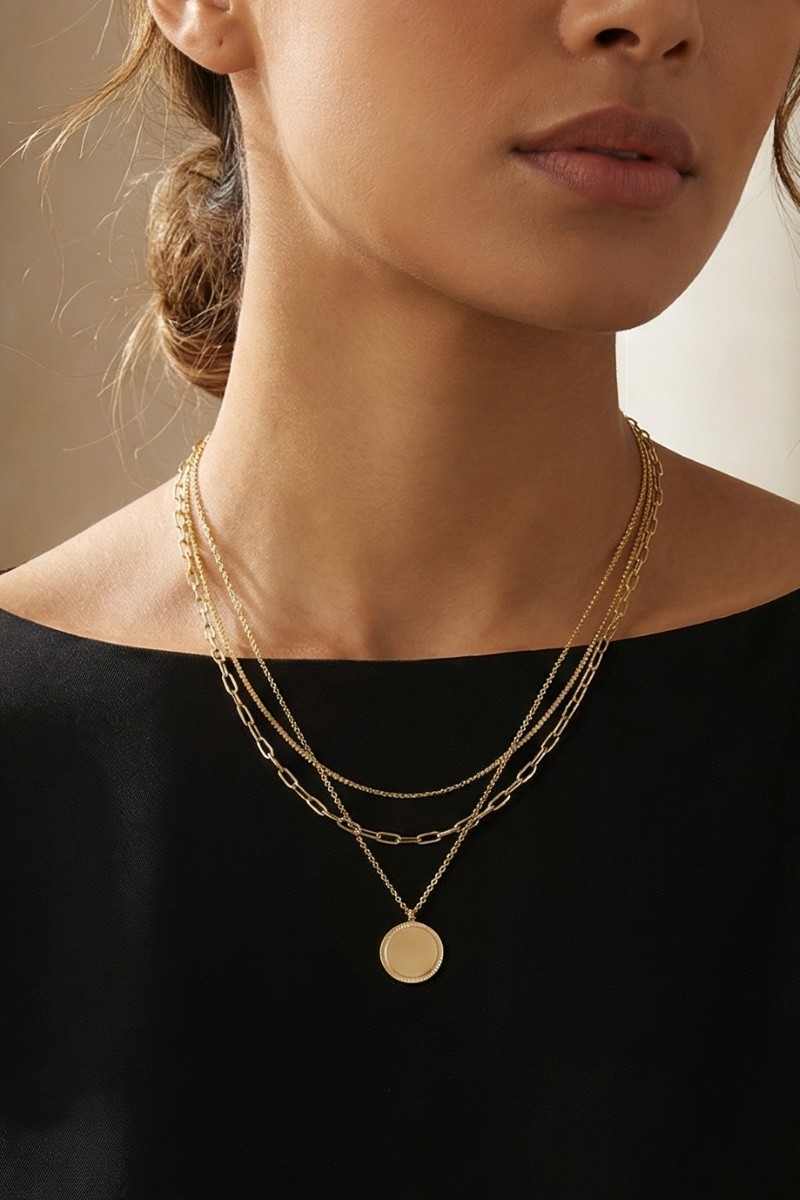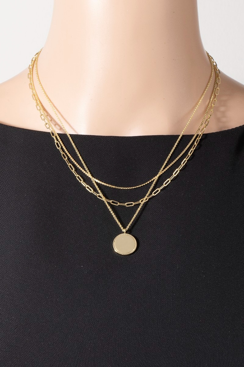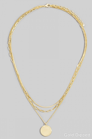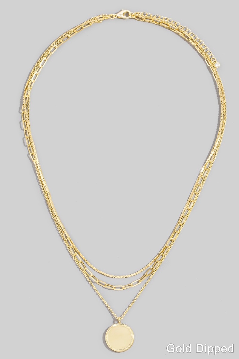 - This pendant necklace adds a modern gold dipped coin pendant layered chains necklace style. Unveil modern elegance with this subtly intricate pendant necklace.