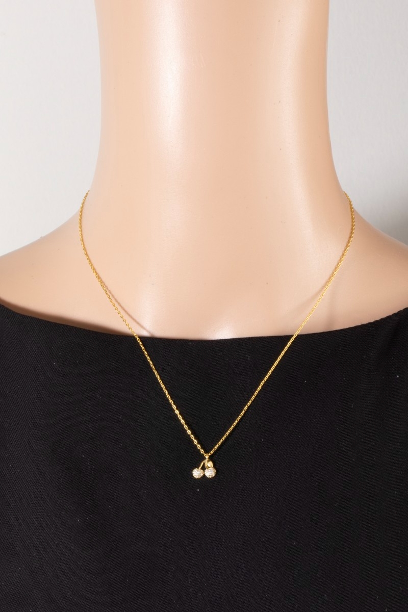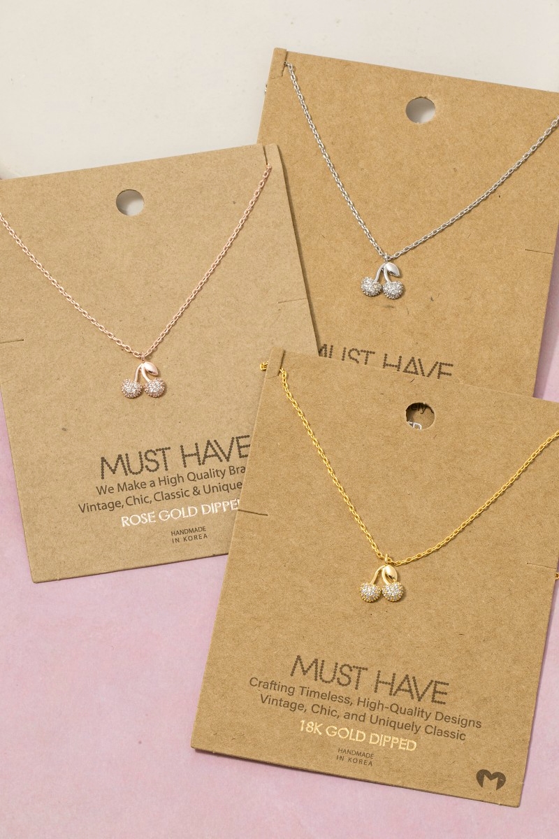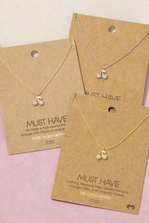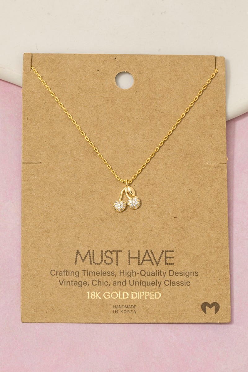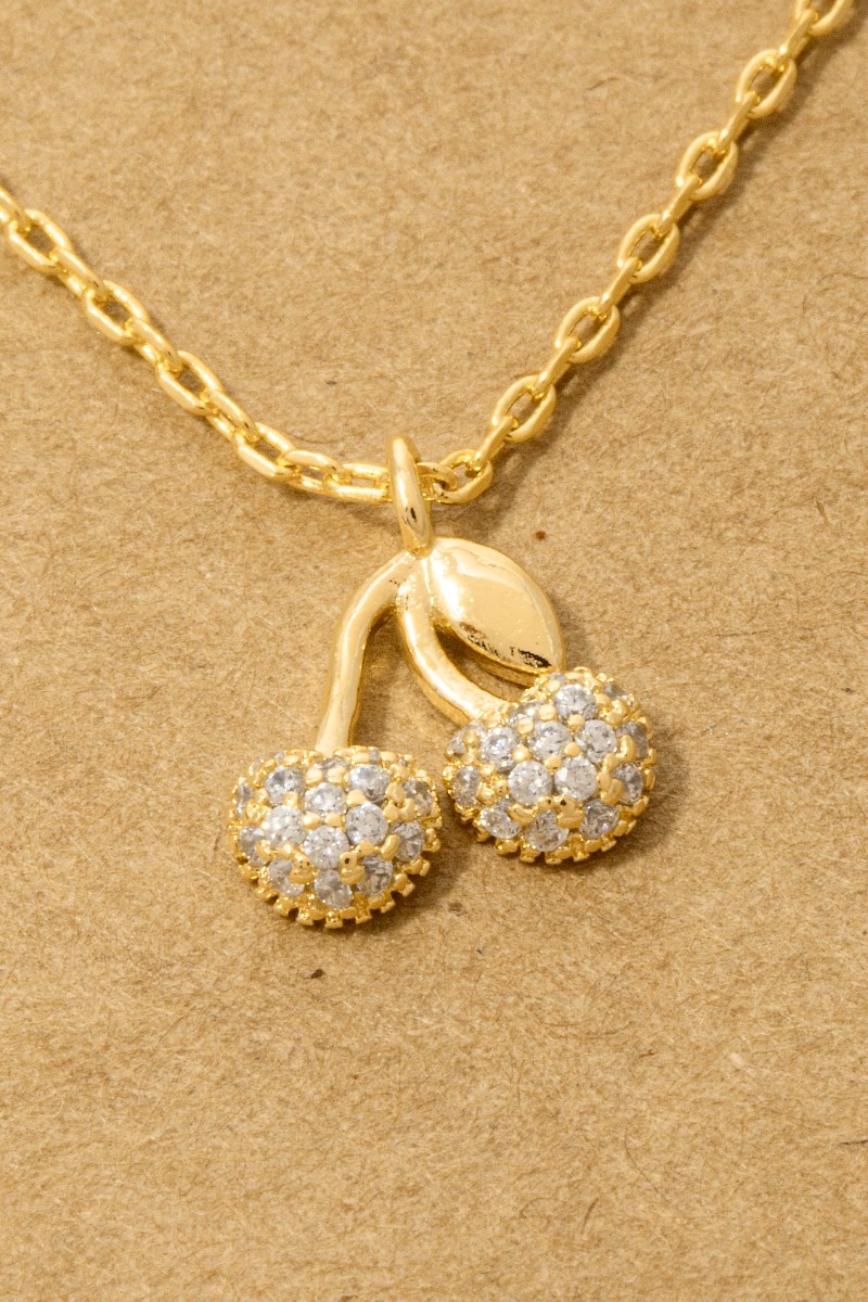 • This pendant necklace displays a fashionable gold dipped cubic zirconia pave cherry style. Discover the perfect balance of subtlety and flair as this pendant necklace effortlessly completes your look.