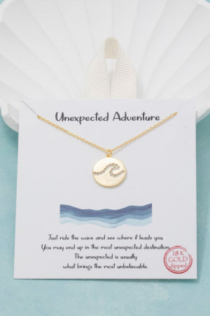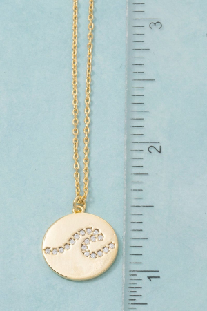 • This pendant necklace introduces a stunning gold dipped cubic zirconia pave wave coin style. Embark on a journey of sartorial refinement as this pendant necklace effortlessly complements your fashion sense.