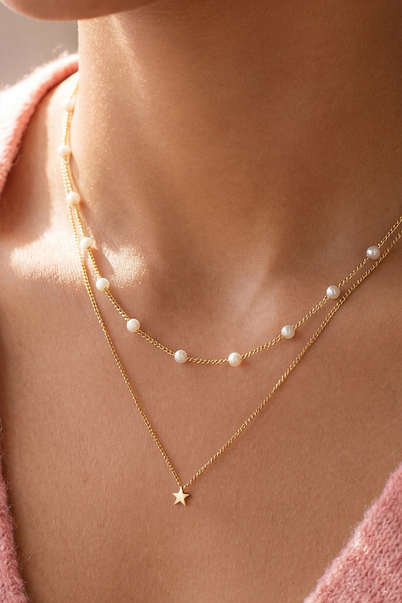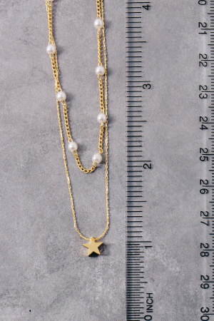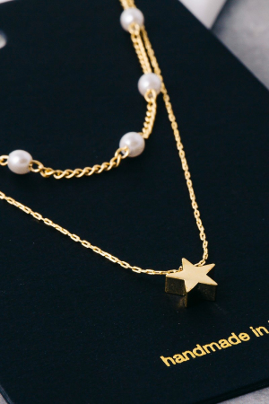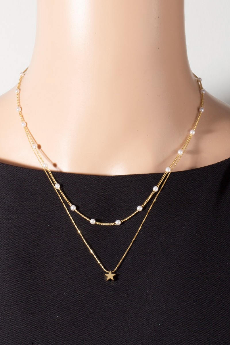 • This pendant necklace features a fashionable layered chain star style. Celebrate the art of accessorizing with this piece that effortlessly encapsulates modern trends.