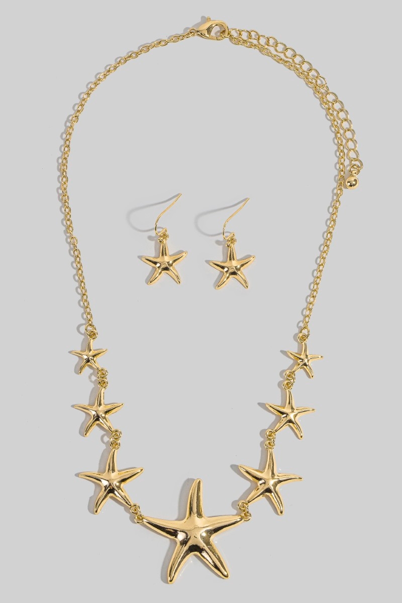 • This necklace set brings a luxurious sealife starfish charms style. Immerse yourself in the details of design, as this necklace set effortlessly becomes a conversation starter.