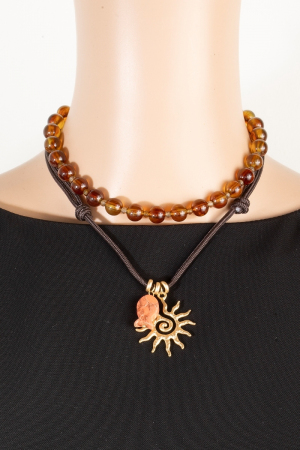 - This pendant necklace displays a fashionable sun and fish pendants layered cord and beaded necklace style. Celebrate the art of accessorizing with this piece that effortlessly encapsulates modern trends.
