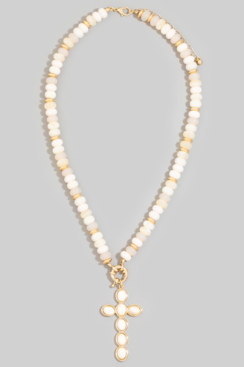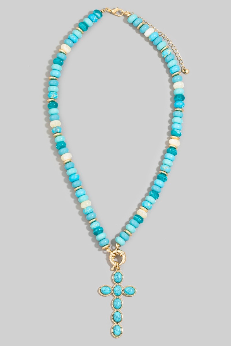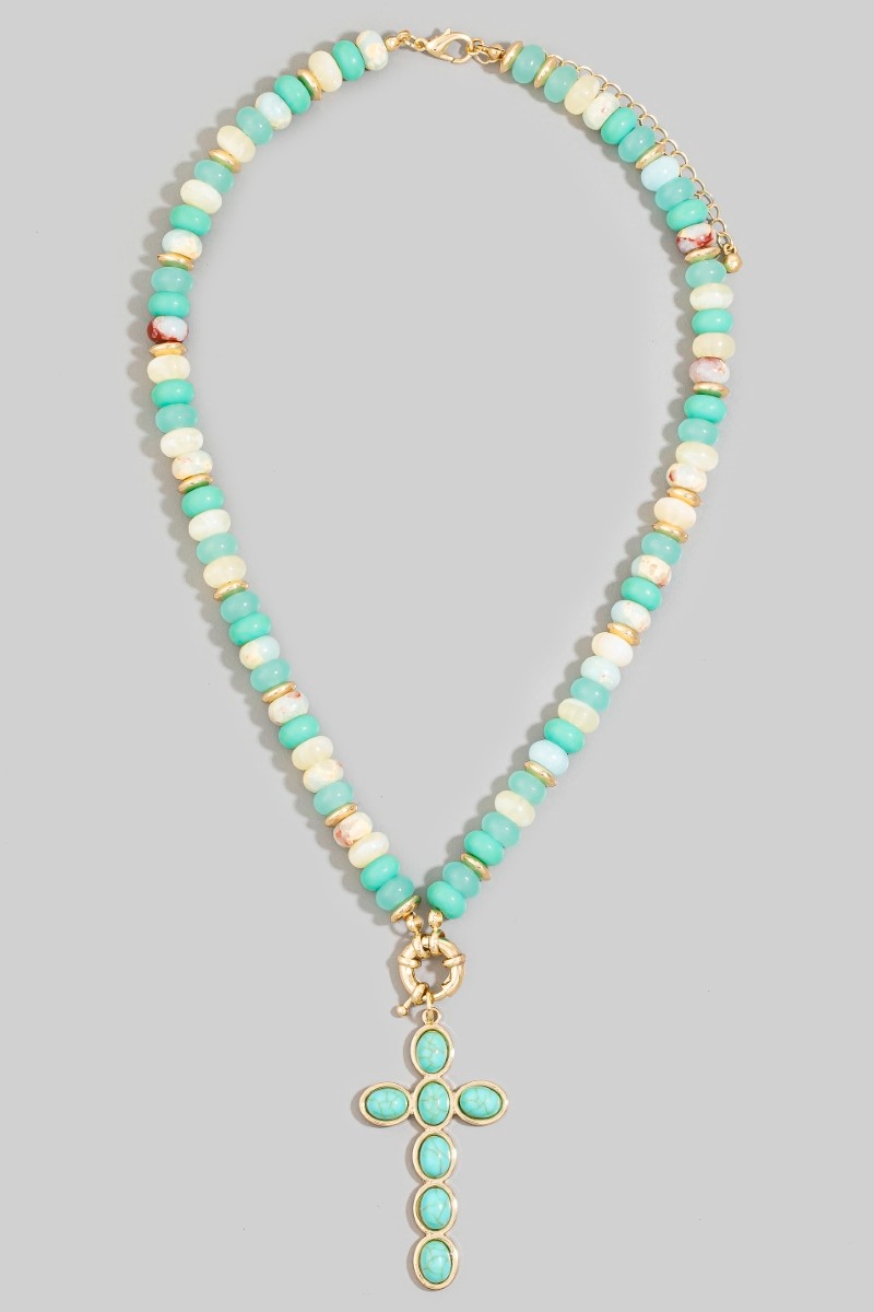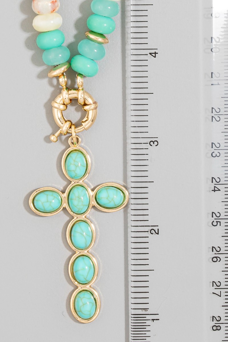 - This pendant necklace brings a luxurious semi precious stone cross style. Witness the transformative power of accessories as this piece effortlessly redefines your fashion narrative.