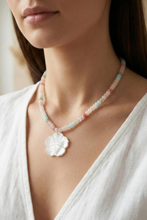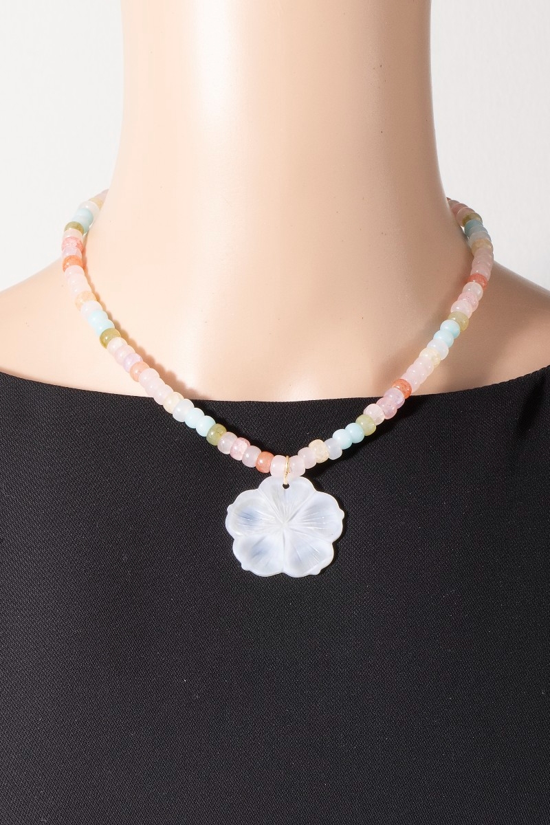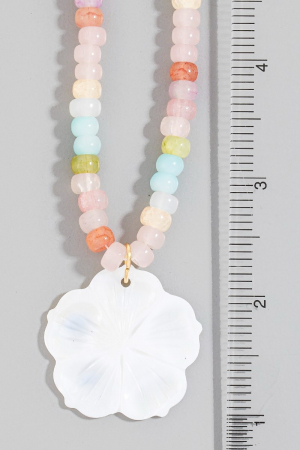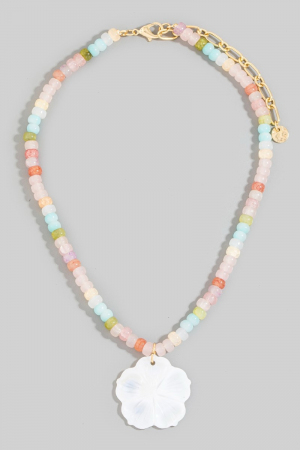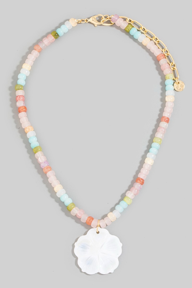 - This pendant necklace showcases a unique shell flower pendant mixed beaded necklace style. Discover the perfect balance of subtlety and flair as this pendant necklace effortlessly completes your look.
