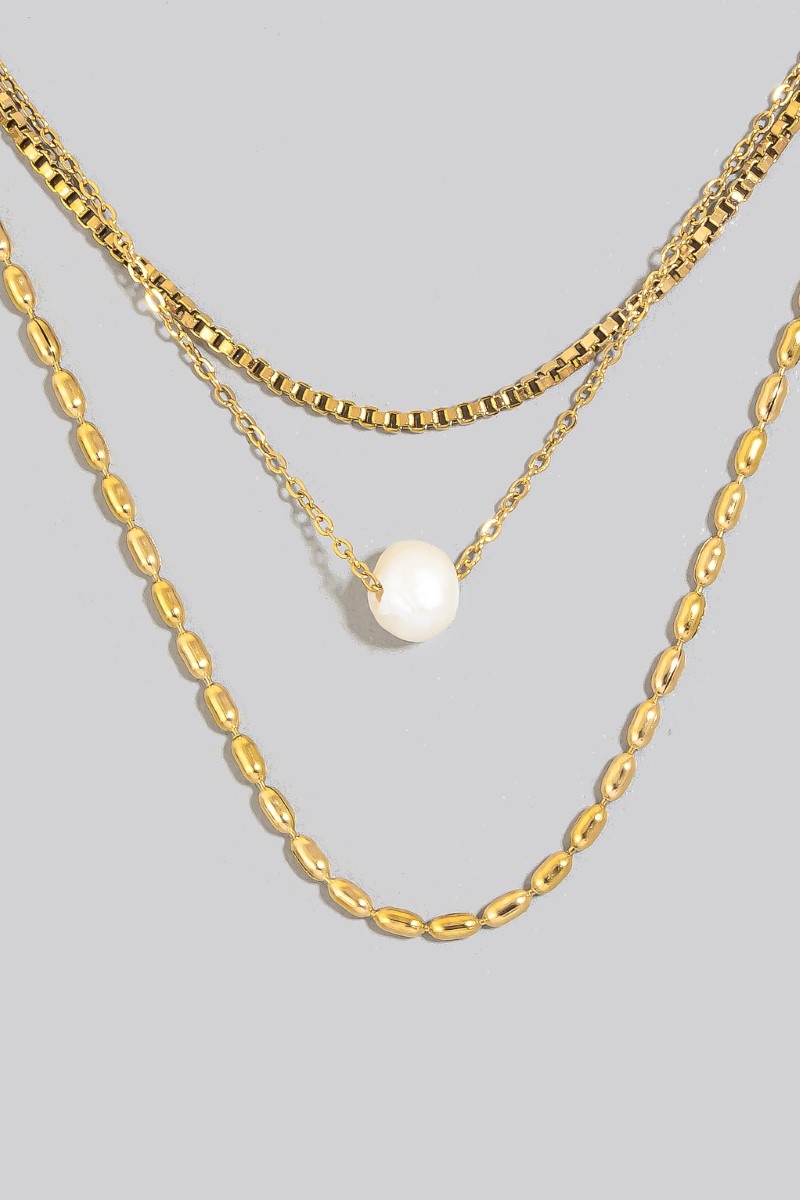 • This chain necklace showcases a timeless pearl charm stainless steel mixed style. Immerse yourself in fashion finesse with this statement chain necklace.