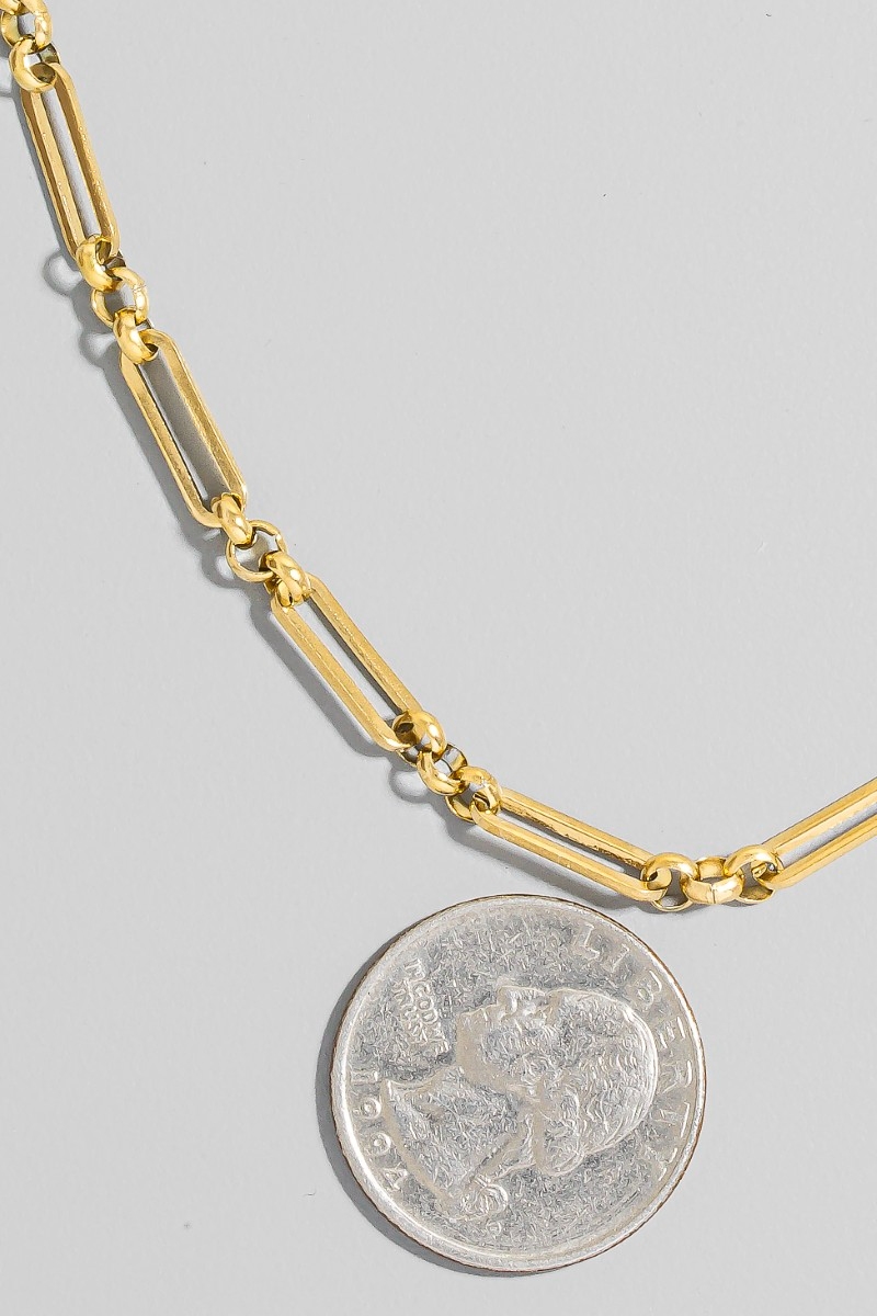 • This necklace introduces a stunning stainless steel dainty oval chain link style. Elevate your ensemble with this necklace that effortlessly captures the essence of refined fashion.
