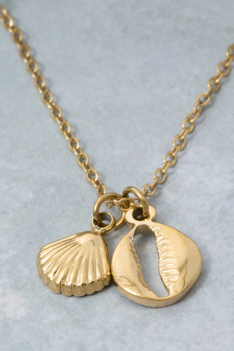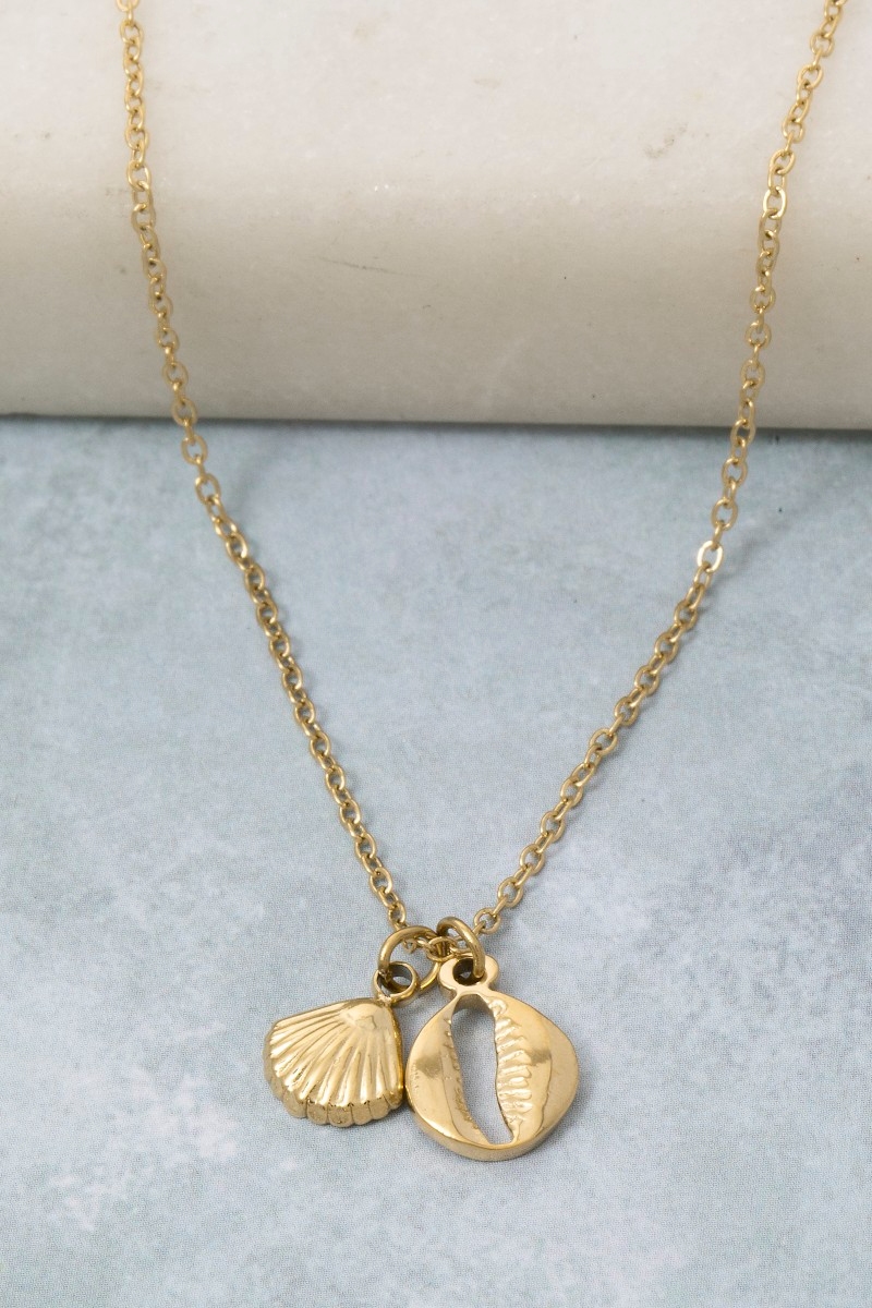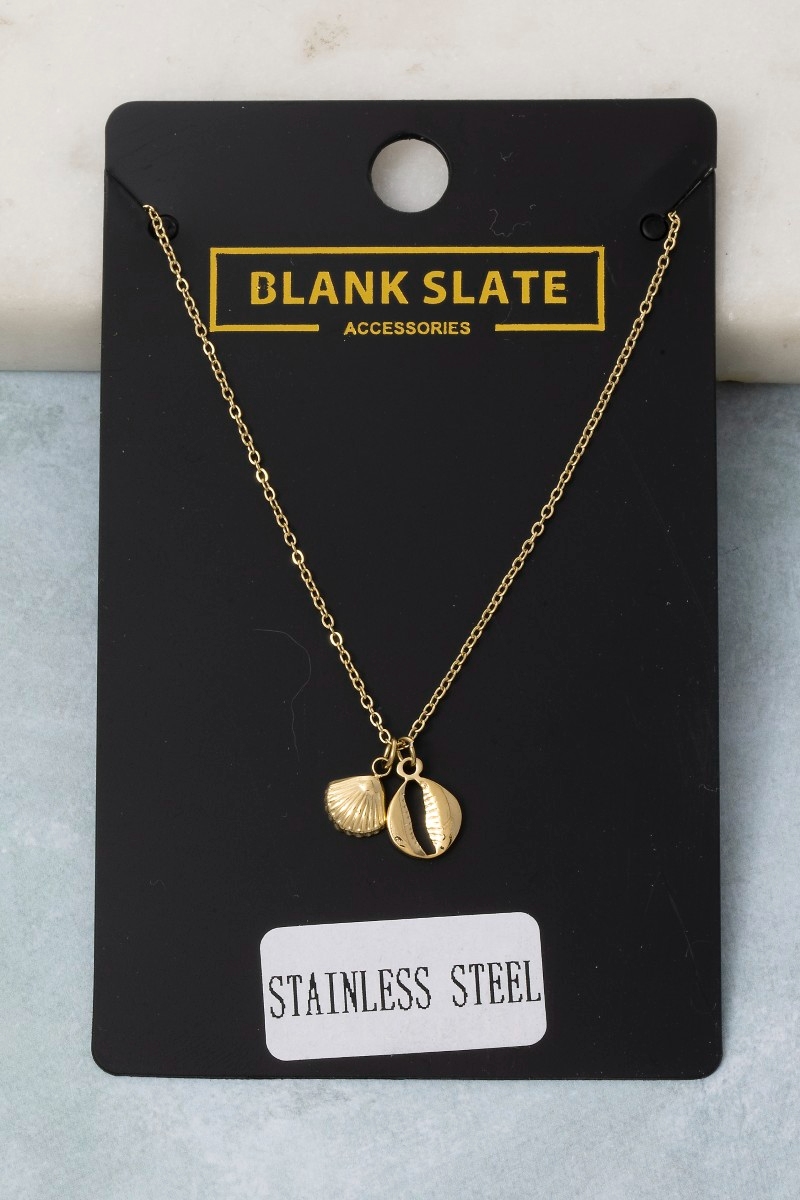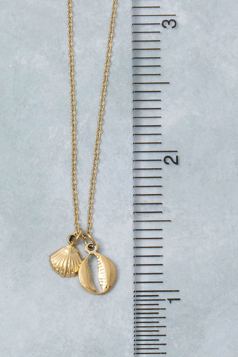 • This necklace introduces a unique stainless steel cowrie and clam sea shell pendant style. Experience the joy of accessorizing with this piece that effortlessly combines versatility and charm.