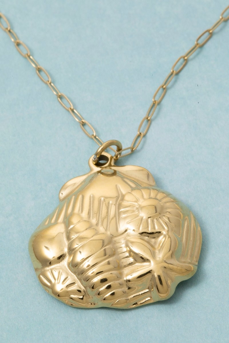 Stainless Steel Studded Sea Shell Pendant Necklace