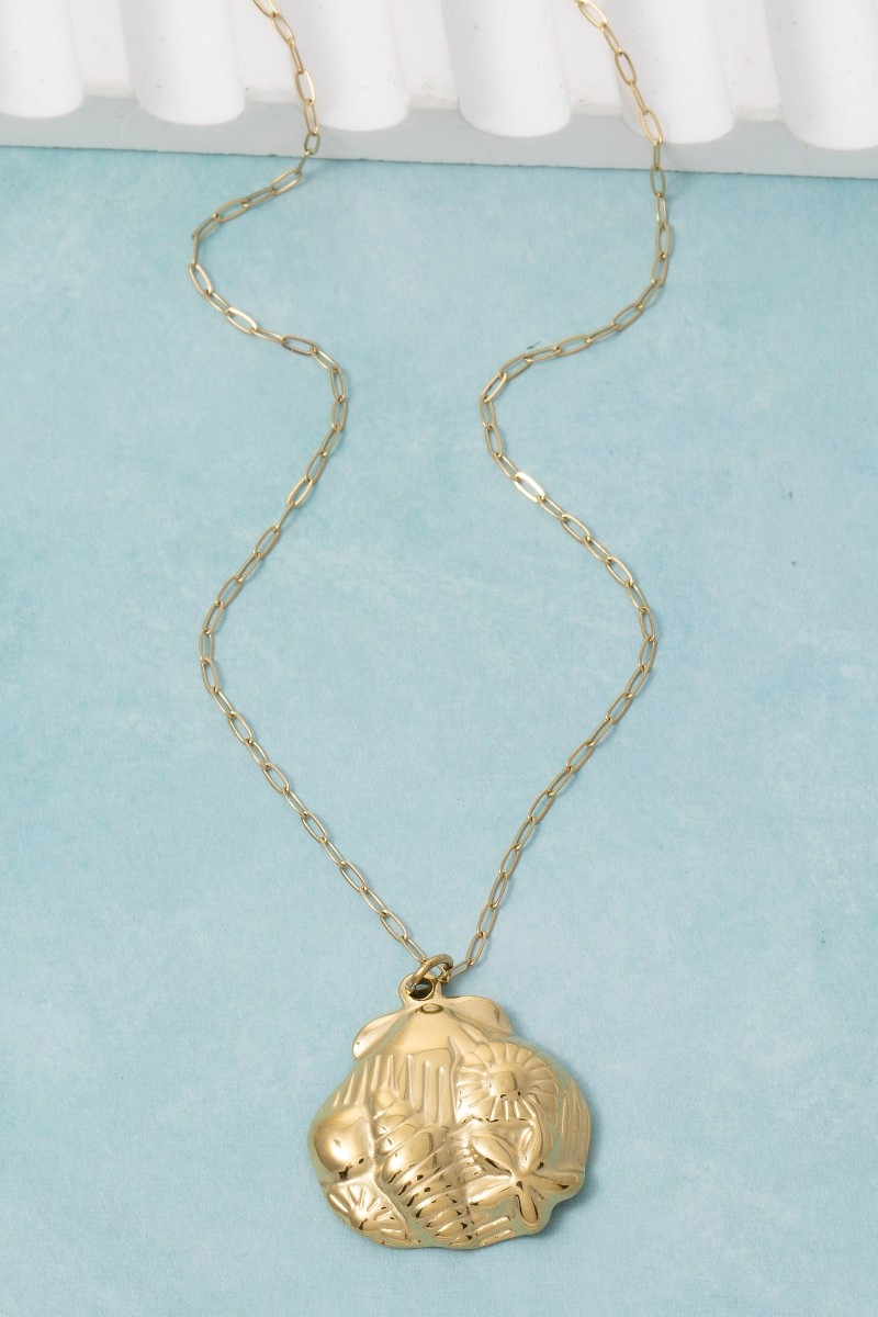 • This necklace displays a vibrant stainless steel mixed sea life pendant style. Immerse yourself in the world of understated glamour as this necklace effortlessly exudes timeless appeal.