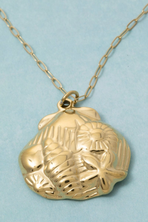 Stainless Steel Sea Shell And Turtle Pendant Necklace