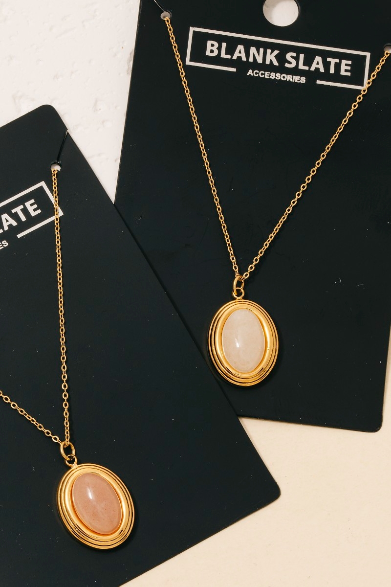• This necklace displays a fashionable stainless steel oval stone pendant style. Discover the perfect balance of functionality and fashion.