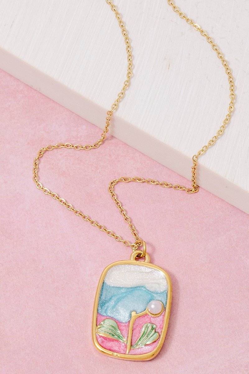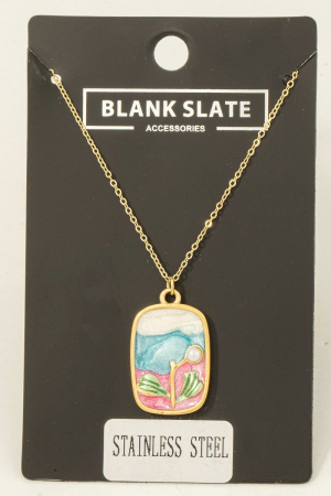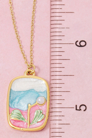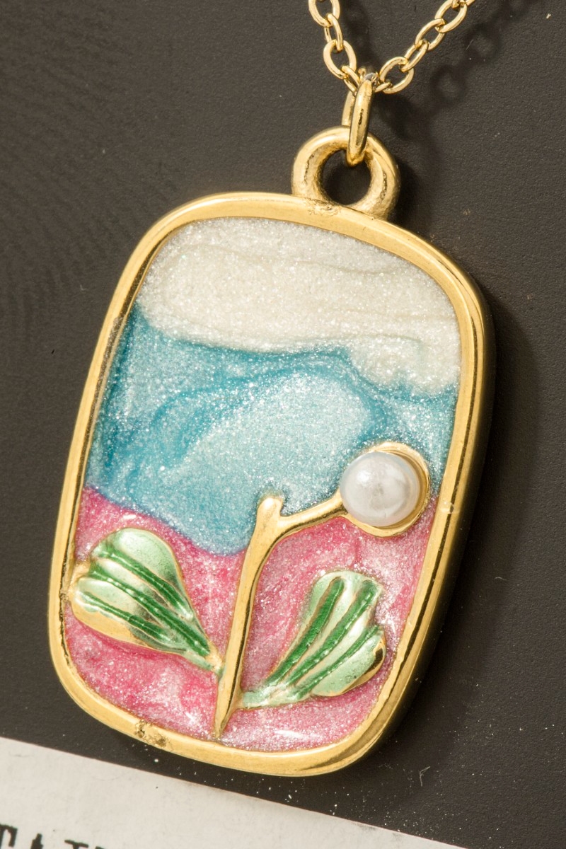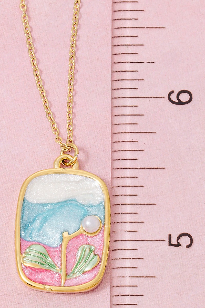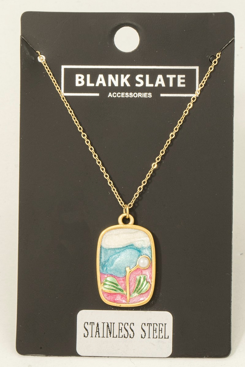 - This necklace showcases a unique stainless steel pearl stud and glitter rectangle pendant style. Celebrate individual style with this versatile, eye-catching addition.