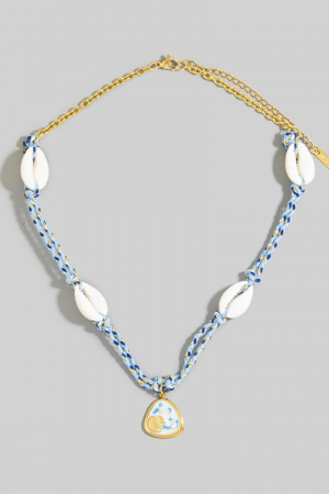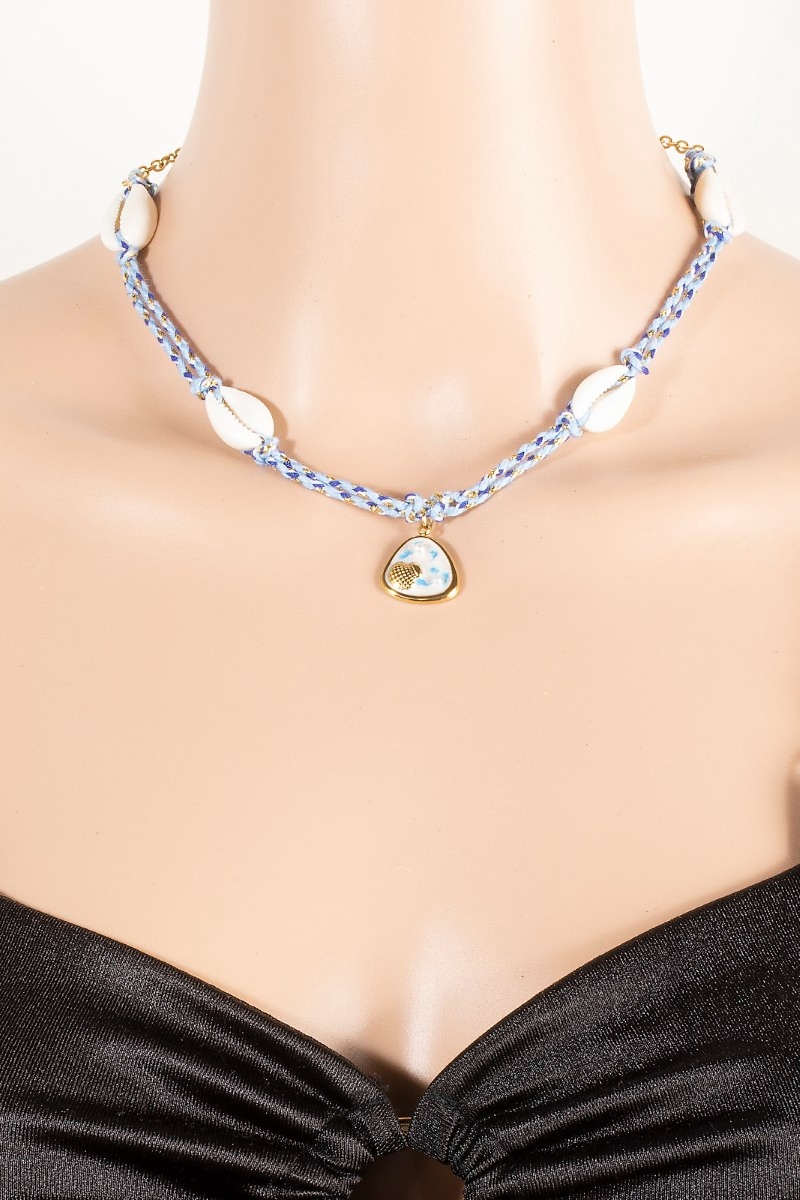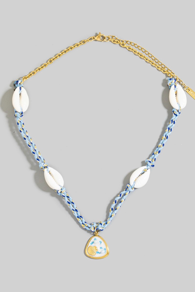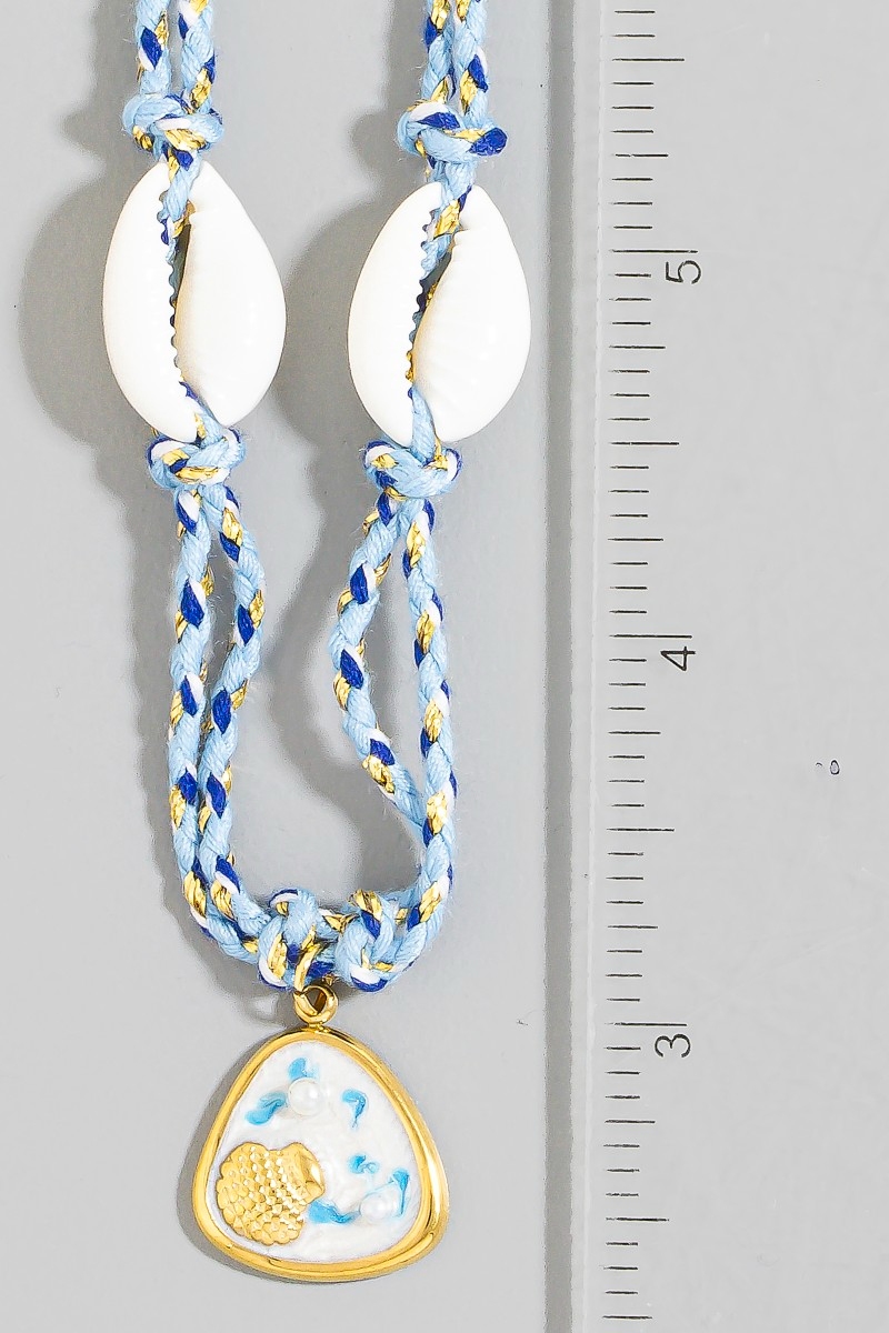 - This necklace displays a vibrant stainless steel sea life coin and puka shell charms braided style. Experience refined sophistication with this understated yet stylish piece.