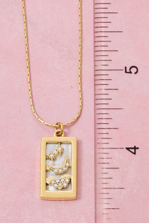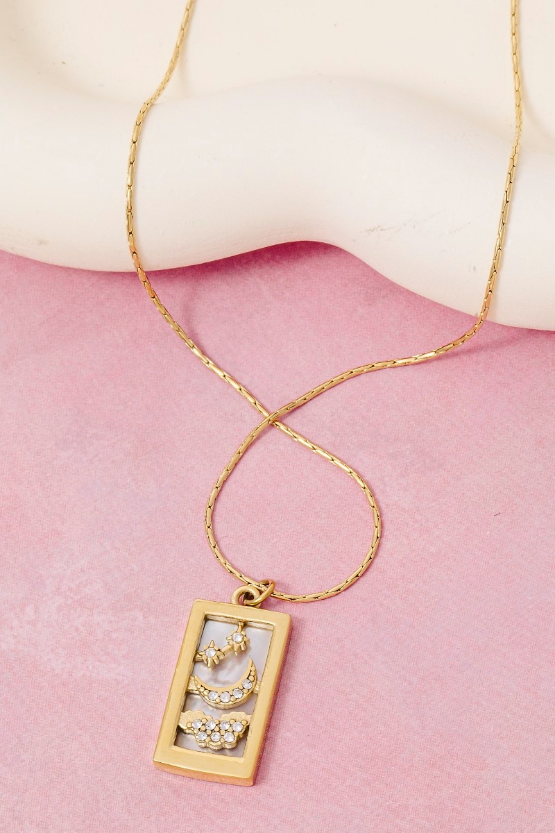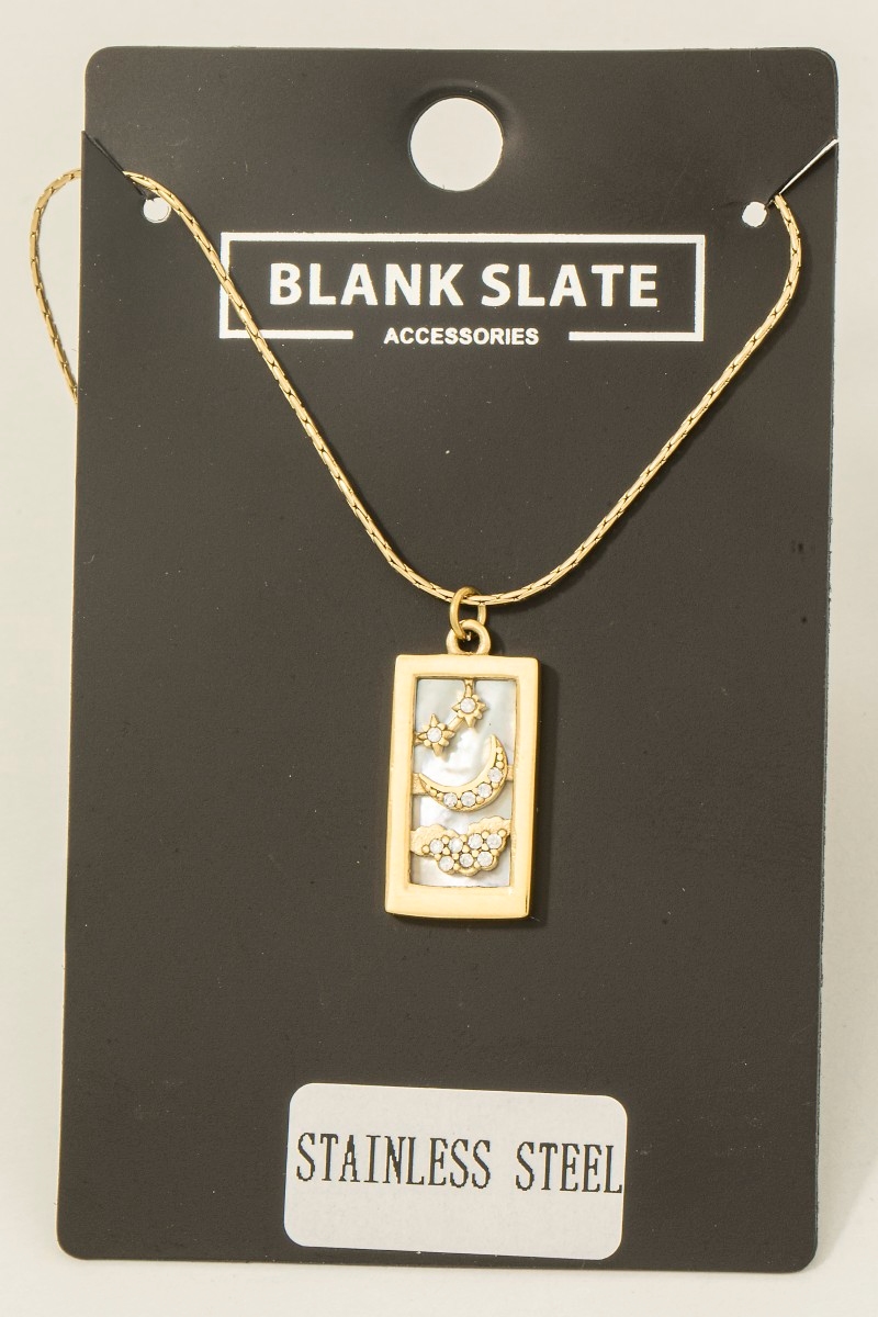 - This necklace displays a fashionable stainless steel studded night rectangle pendant style. Indulge in the artistry of accessorizing with this unique piece.