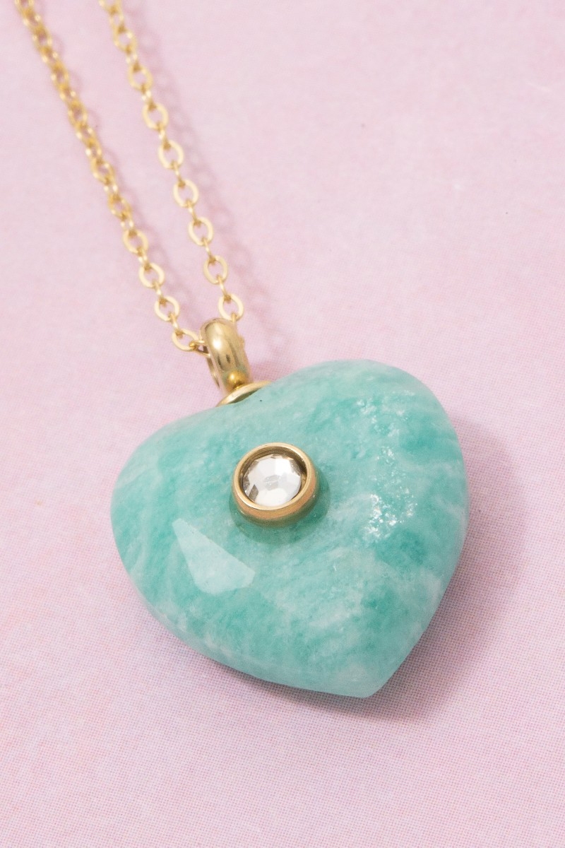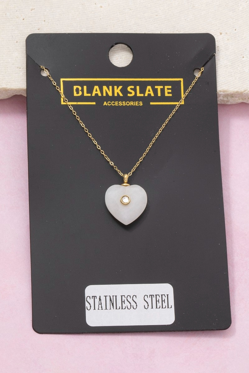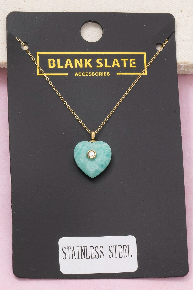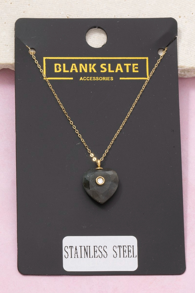 - This pendant necklace brings a unique stainless steel stone heart crystal accent style. Indulge in the allure of exquisite craftsmanship as this pendant necklace effortlessly adds a touch of luxury to your attire.