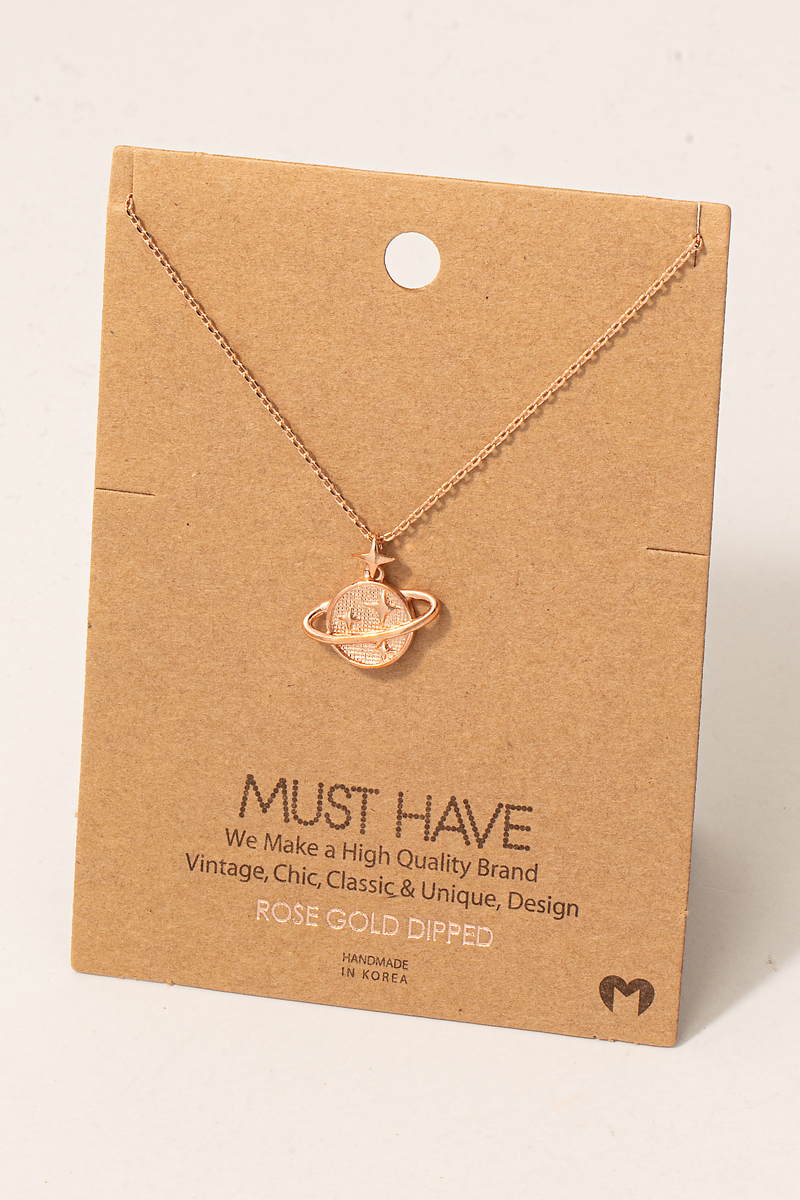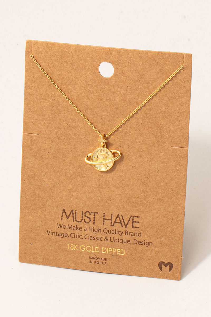 Gold Dipped Pearl Bead Ring Pendant Necklace