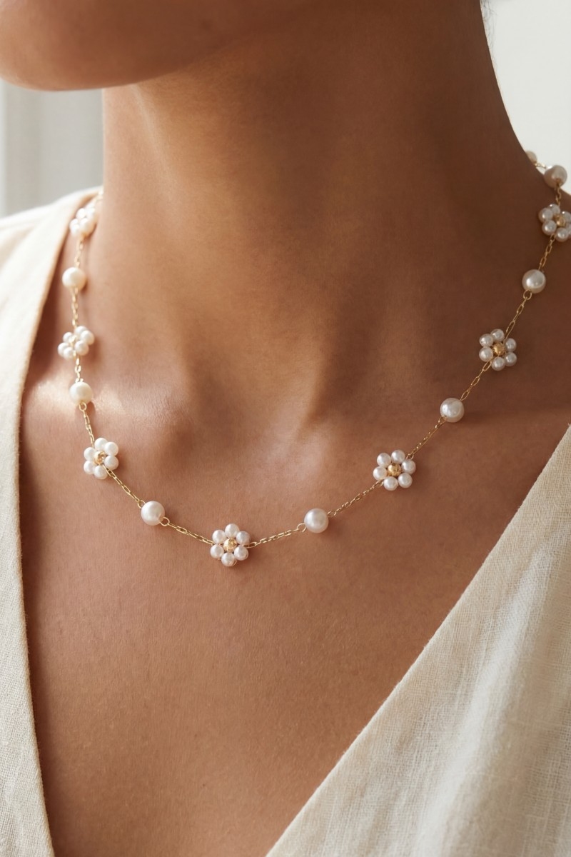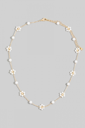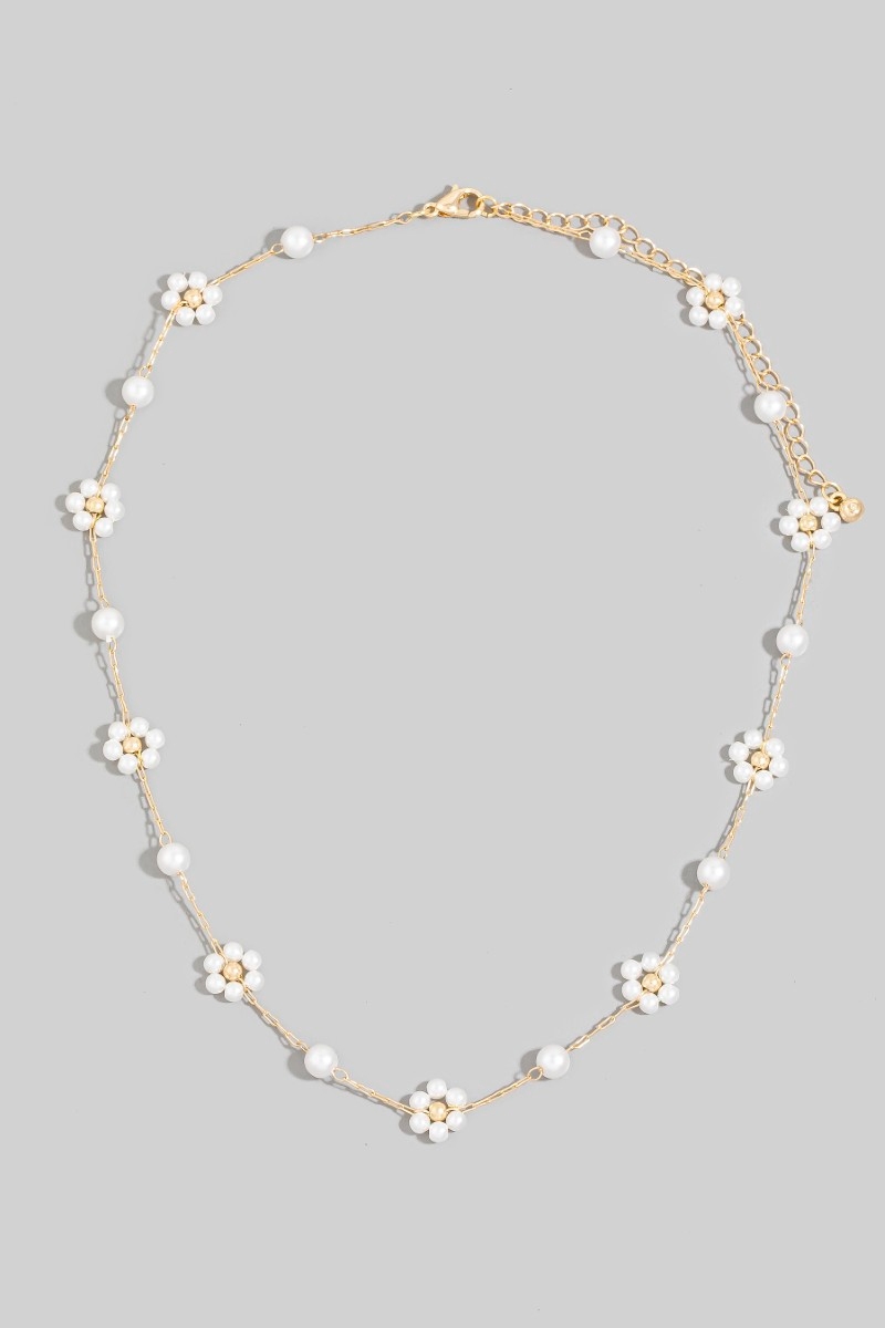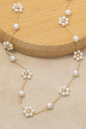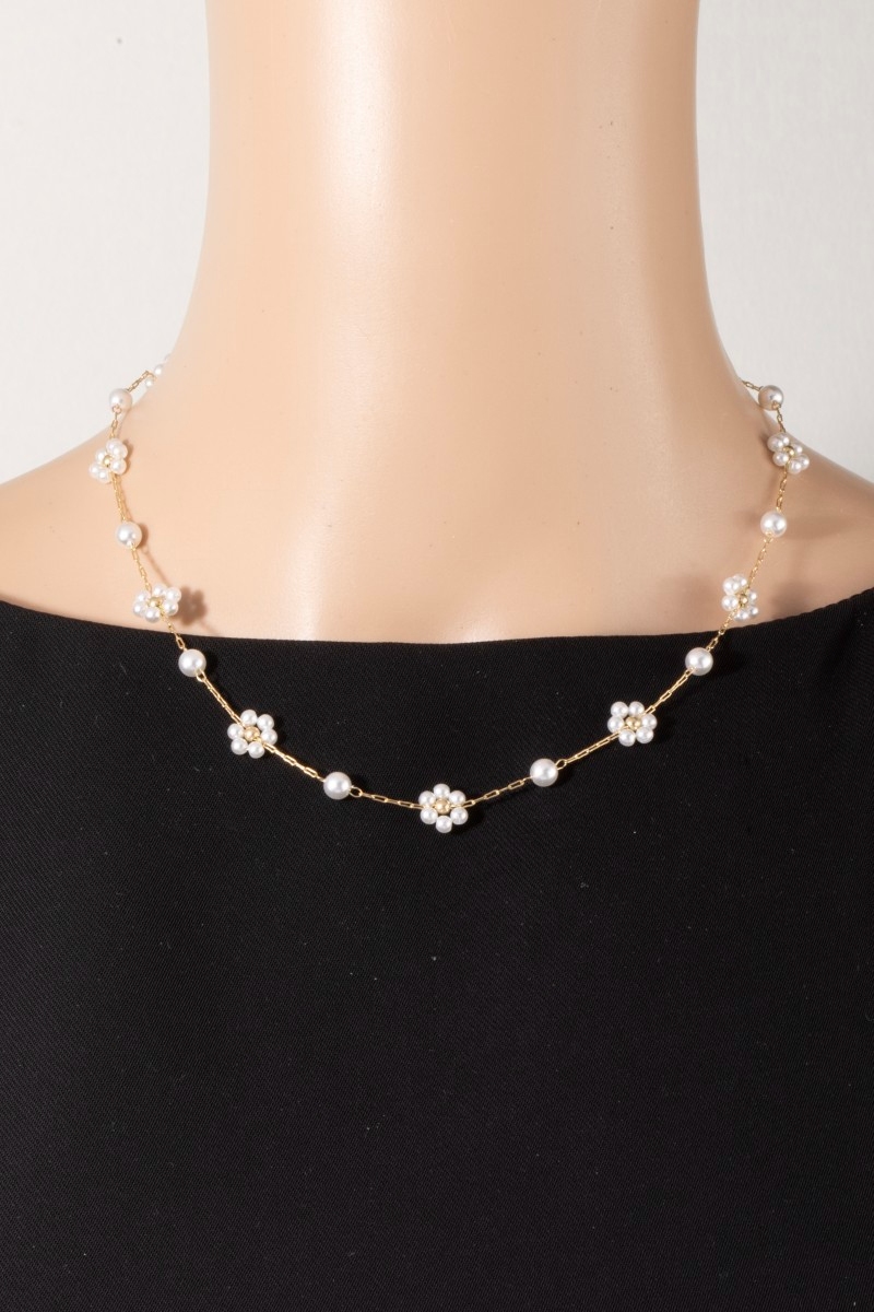 • This chain necklace brings a stunning station pearl beaded flowers style. Step into a world of refined taste as this chain necklace effortlessly refines the details of your outfit.
