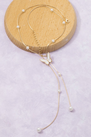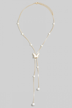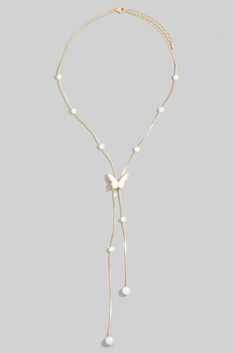 - This chain necklace brings a luxurious station pearl charms butterfly tie style. Discover the perfect balance of functionality and fashion.
