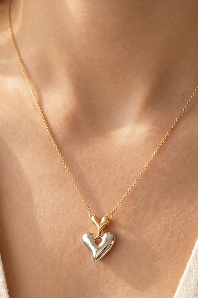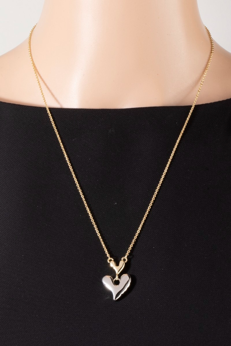 - This pendant necklace brings a unique two-tone puffy heart style. Experience a subtle blend of modernity and classic charm as this pendant necklace effortlessly adorns your ensemble.