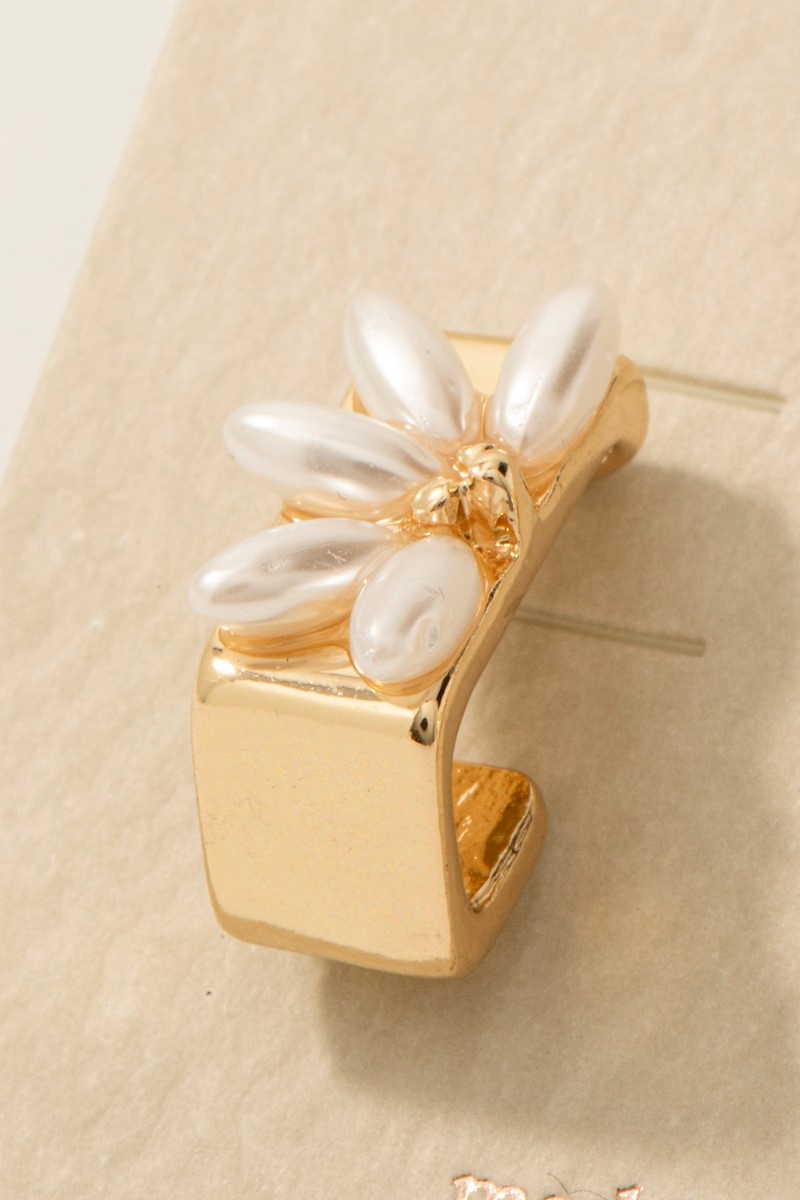 - This pair of hoop earrings is featured in our Floral and Pearl Collection.