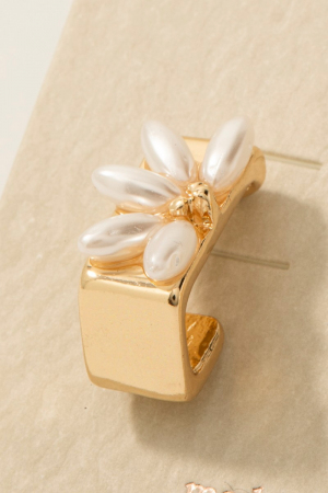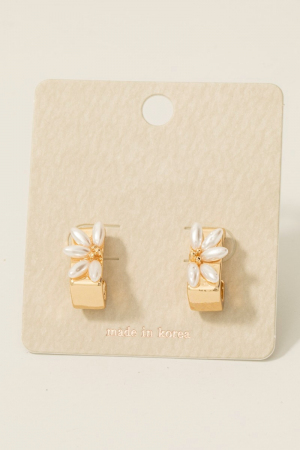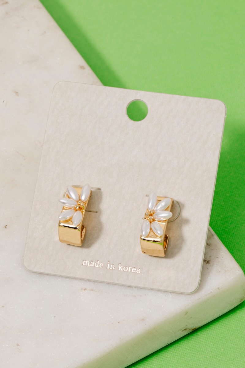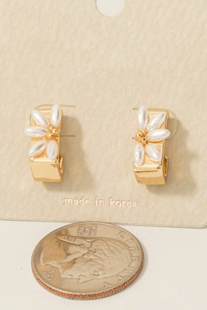 - This pair of hoop earrings introduces a stunning pearl beads half flower rectangle style. Step into a world of refined taste as this pair of hoop earrings effortlessly refines the details of your outfit.