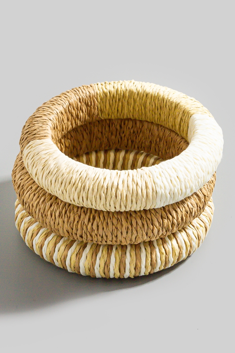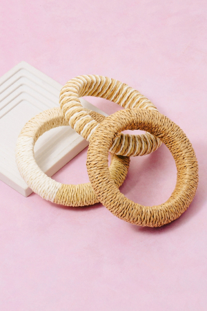 • This bangle bracelet brings a unique 3pc mixed straw weave set style. Experience a burst of creativity in accessorizing as this piece effortlessly sets the tone for your unique style.