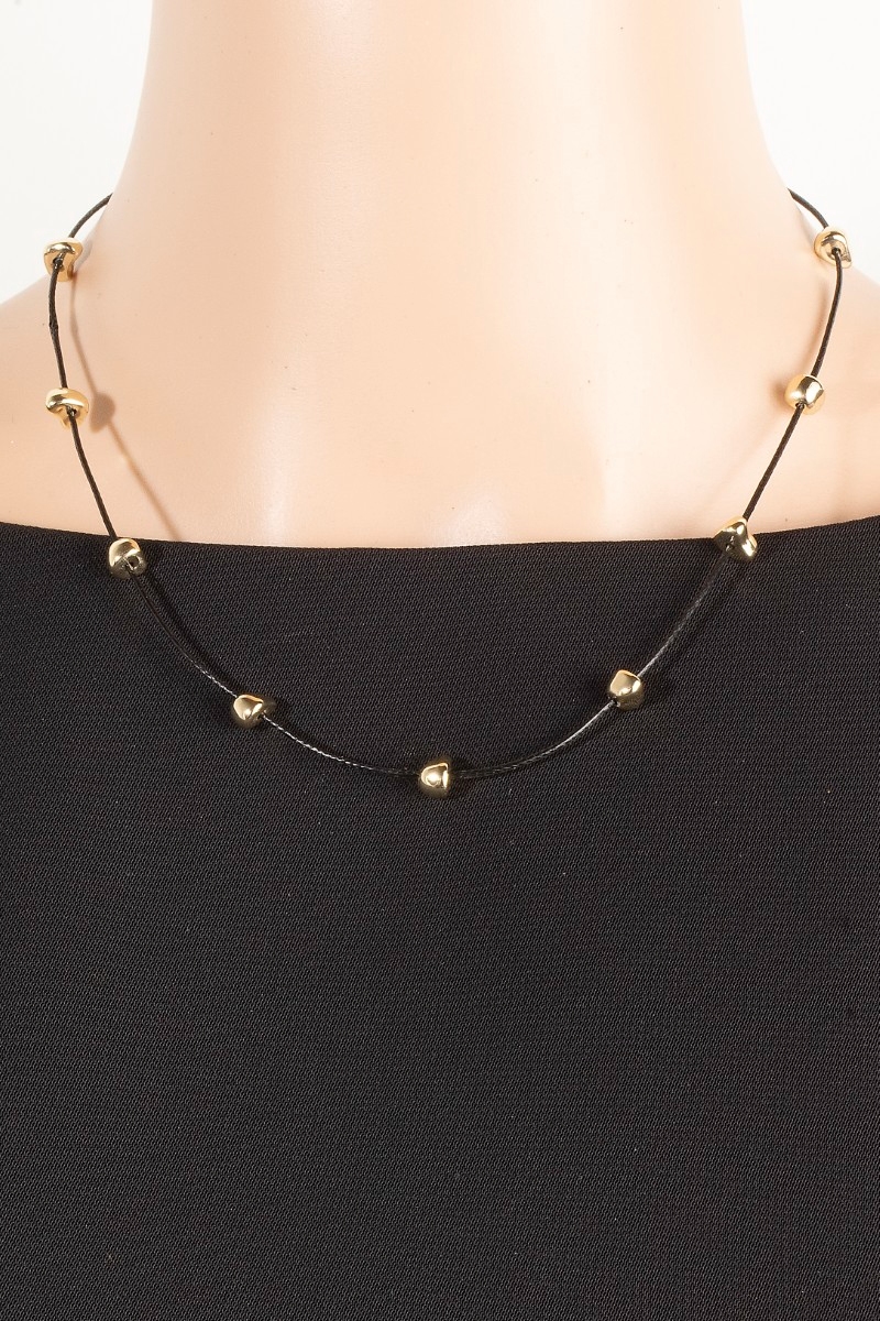 - This necklace showcases a unique abstract metallic charms cord style. Indulge in the allure of exquisite craftsmanship as this necklace effortlessly adds a touch of luxury to your attire.