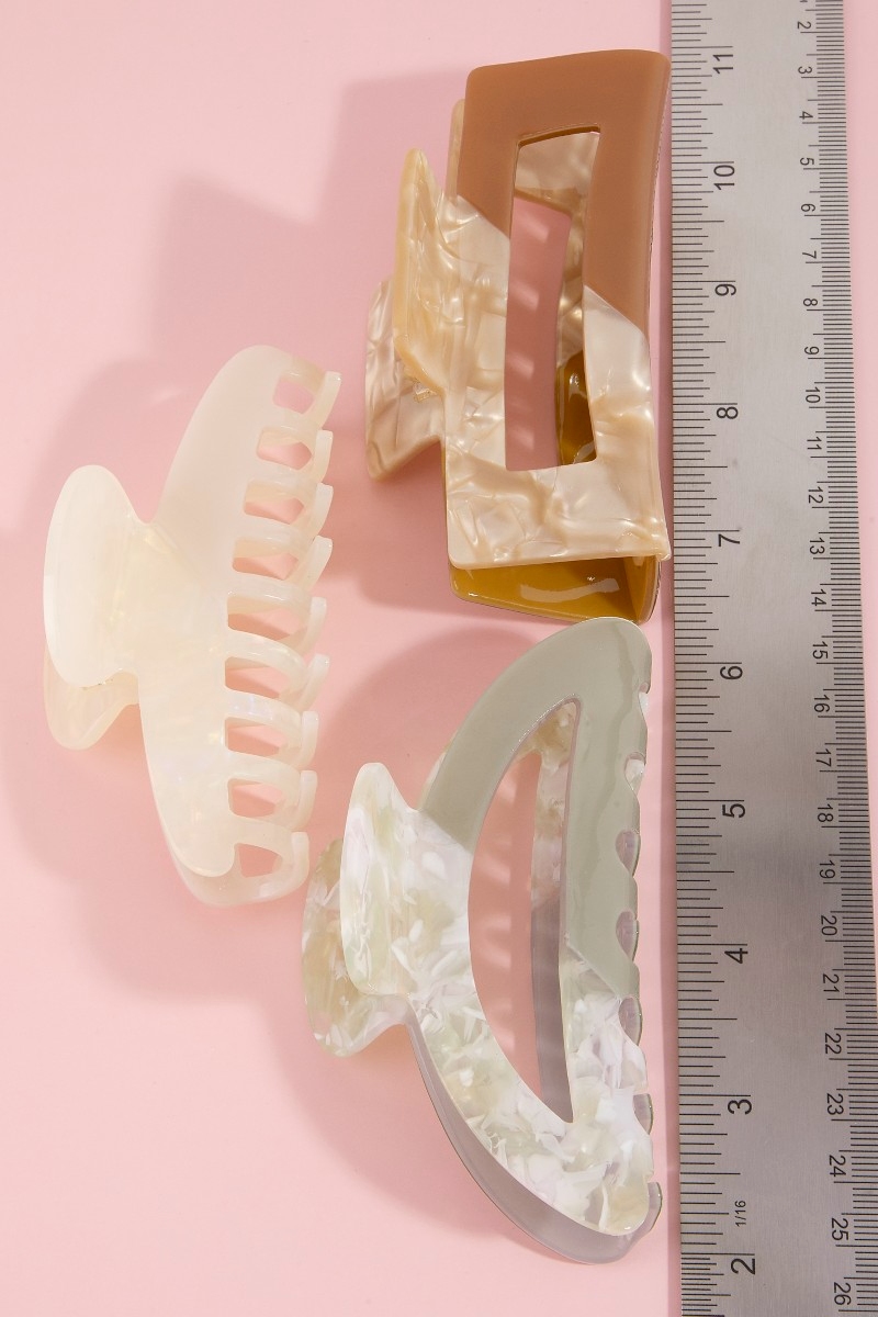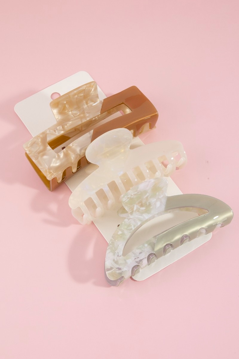 - This adds a modern acetate three piece hair claw set style. Experience refined sophistication with this understated yet stylish piece.