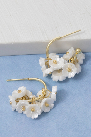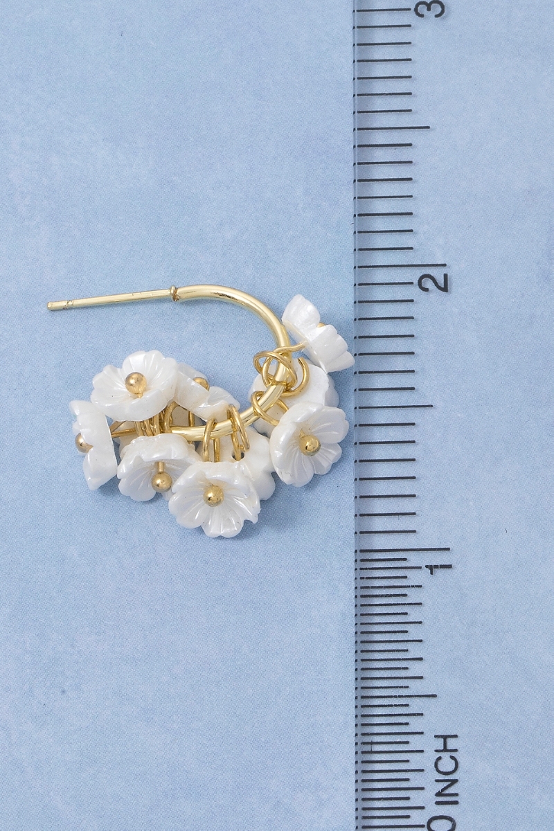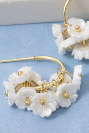- This pair of hoop earrings features a fashionable acrylic flower cluster style. Savor the allure of detailed craftsmanship in this exquisite pair of hoop earrings.