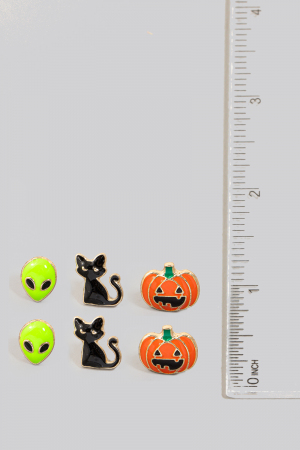 - This pair of earrings brings a stunning three piece enamel halloween set style. Celebrate individual style with this versatile, eye-catching addition.