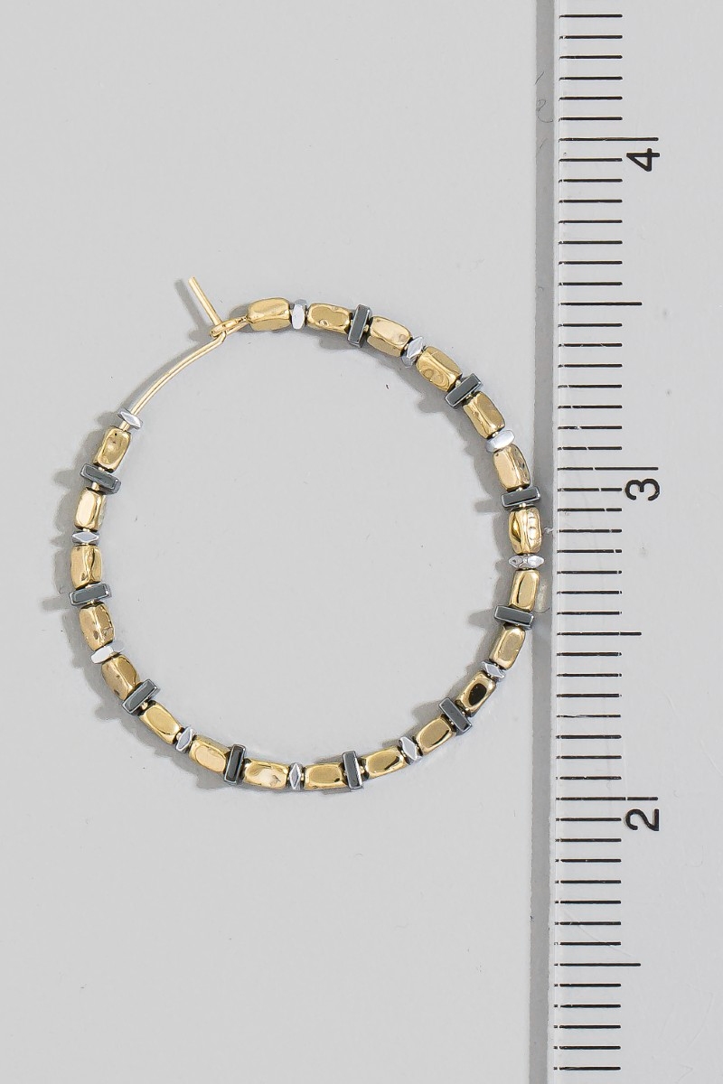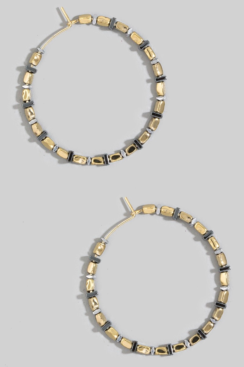 - This pair of hoop earrings showcases a timeless assorted bead style. Delight in the nuanced details that make this pair of hoop earrings a testament to fine design and impeccable taste.
