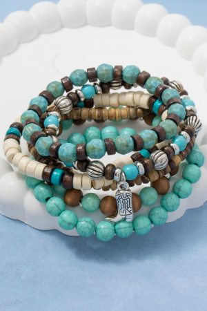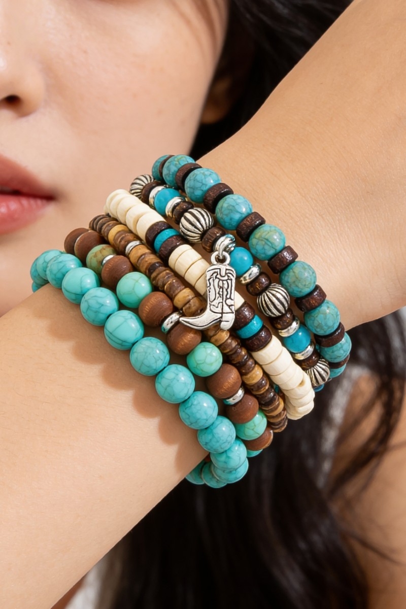 - This bracelet brings a unique assorted western charms wooden beads set style. Celebrate the art of accessorizing with this piece that effortlessly encapsulates modern trends.