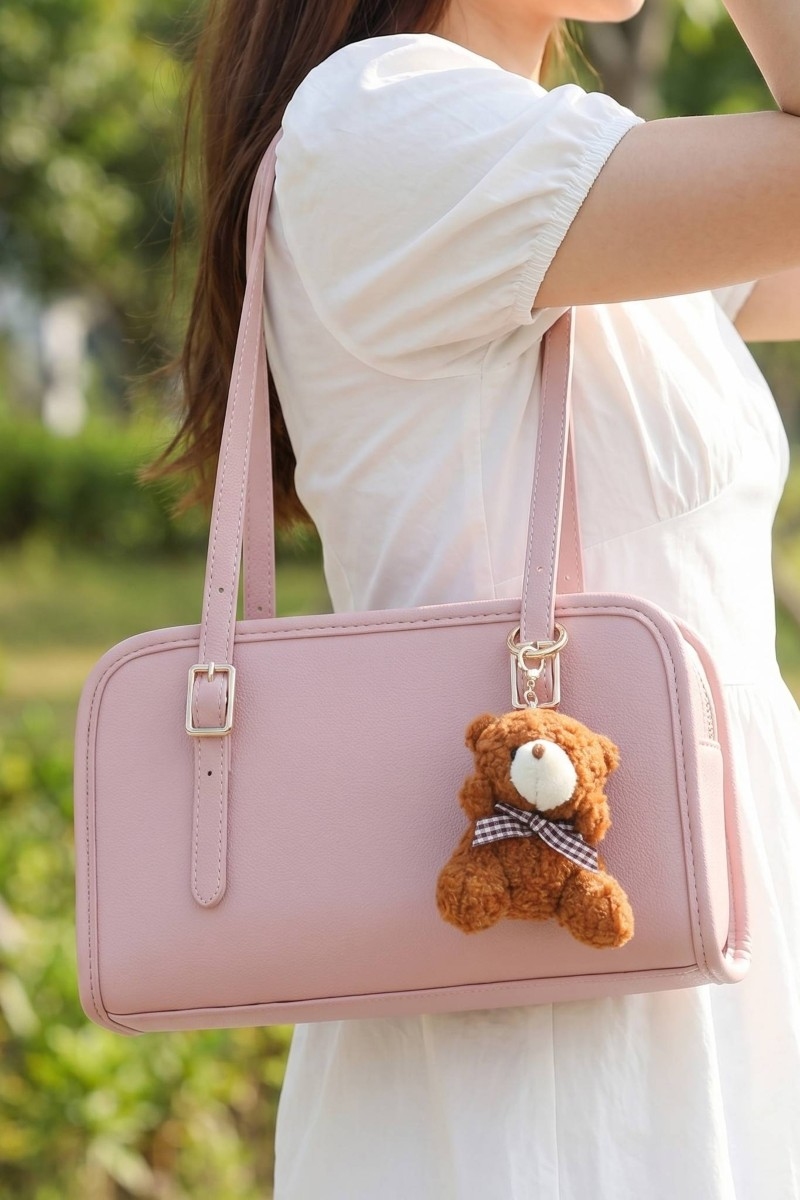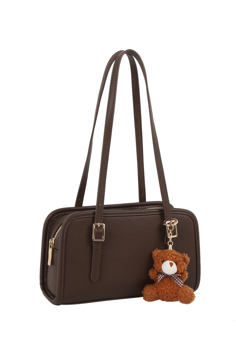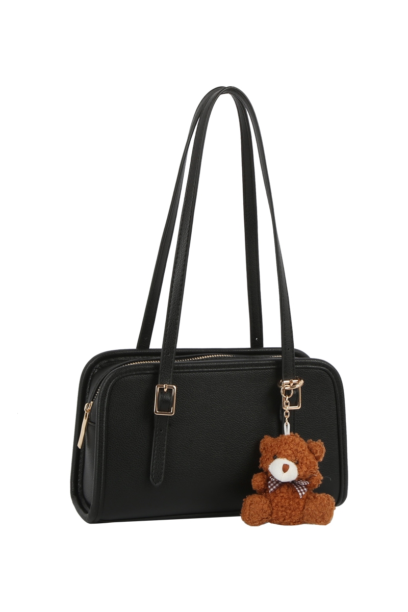 - This hand bag showcases a unique bag charm buckle top handle leather boston bag style. Elevate your ensemble with this chic, timeless hand bag.