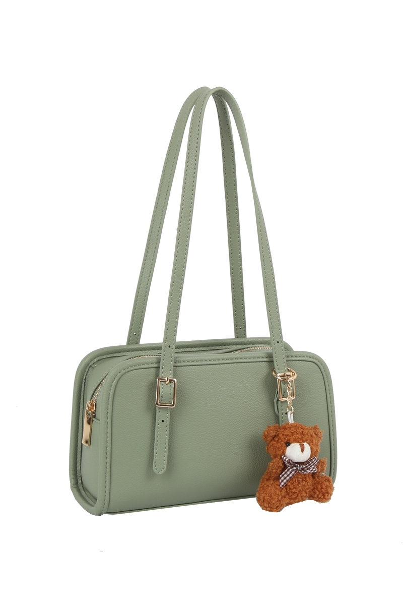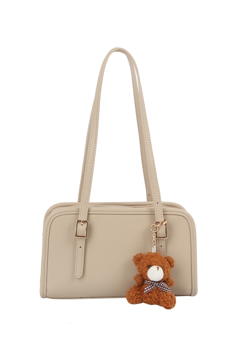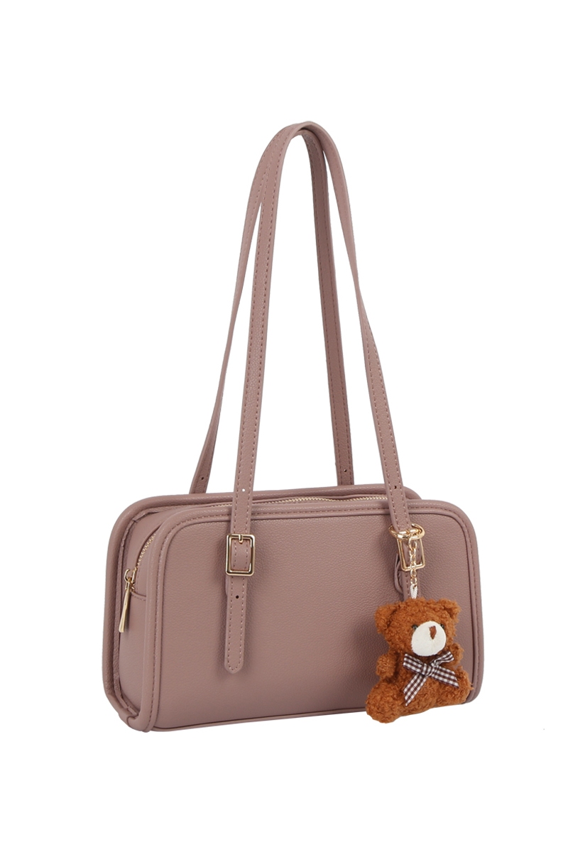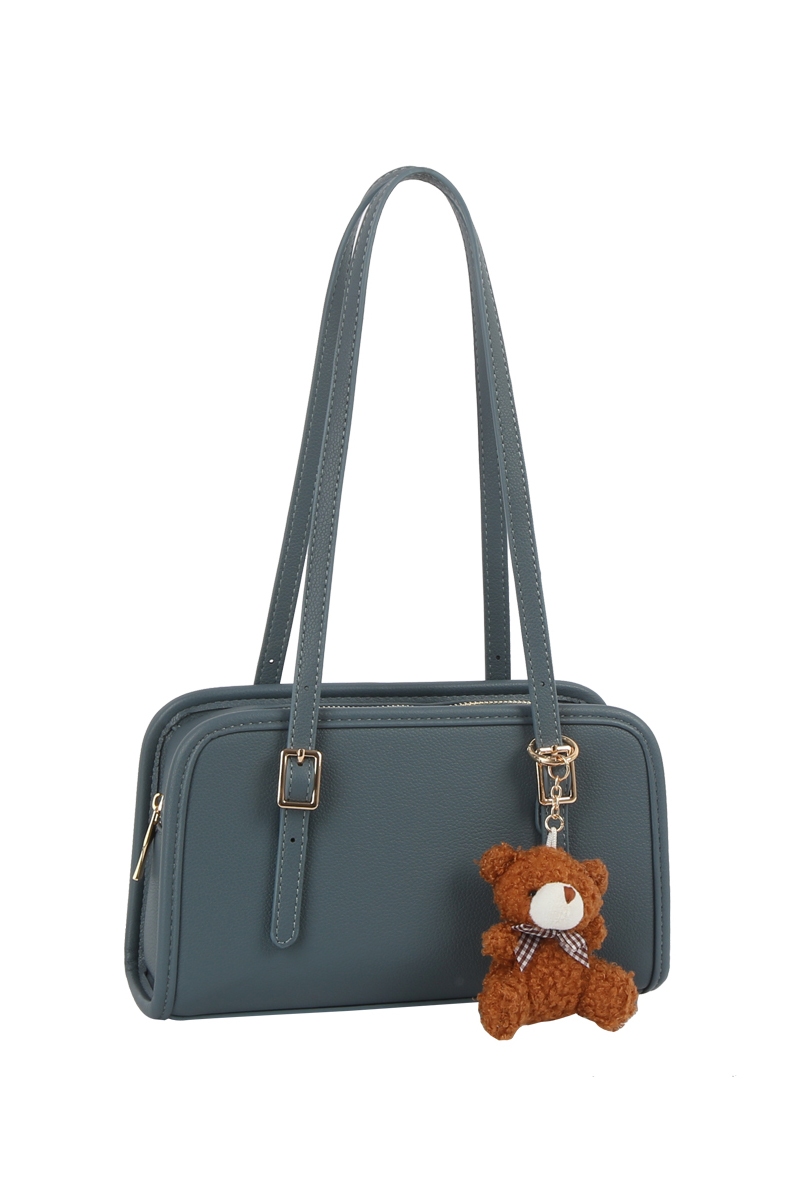 - This hand bag showcases a unique bag charm buckle top handle leather boston bag style. Elevate your ensemble with this chic, timeless hand bag.