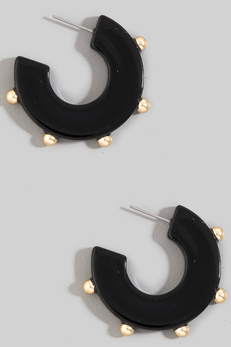 • This pair of hoop earrings brings a stunning ball bead accent acetate style. Savor the allure of detailed craftsmanship in this exquisite pair of hoop earrings.