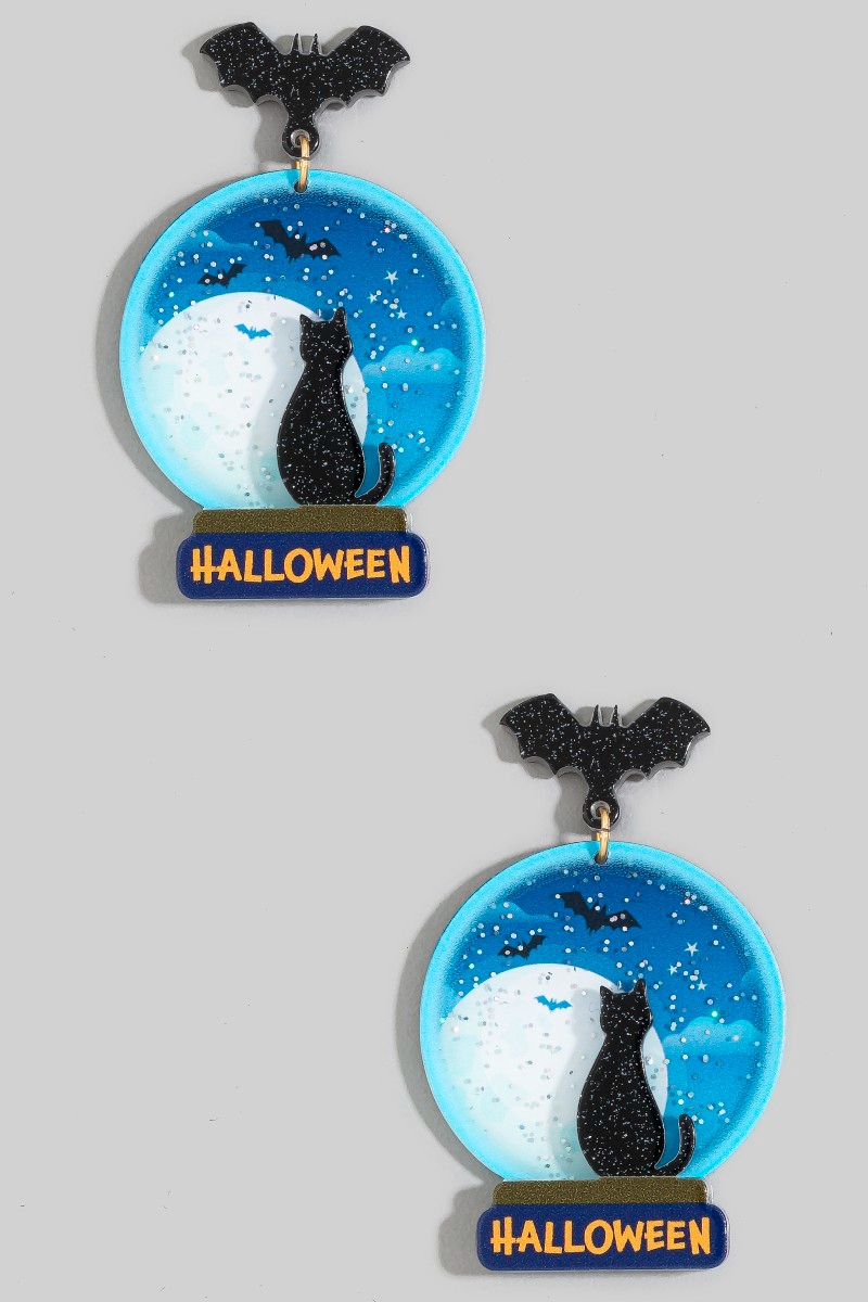 - This pair of earrings features a fashionable black cat halloween style. Embark on a journey of sartorial refinement as this pair of earrings effortlessly complements your fashion sense.