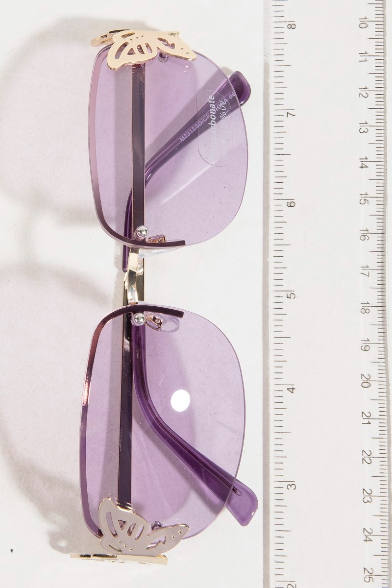 - This set of sunglasses adds a modern butterfly accent frameless rectangle sunglasses set style. Experience refined sophistication with this understated yet stylish piece.