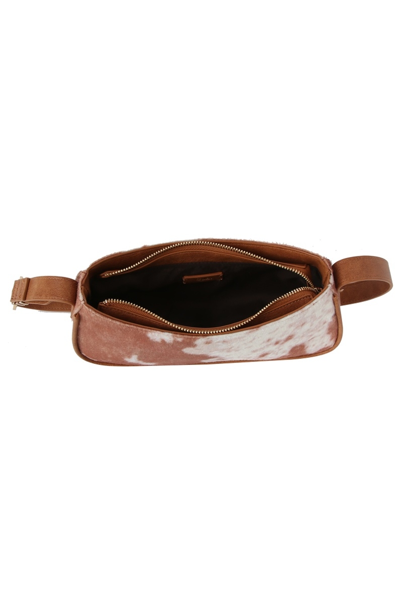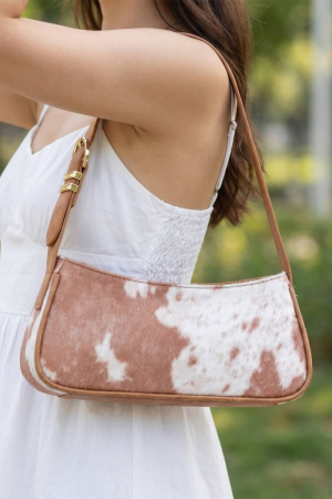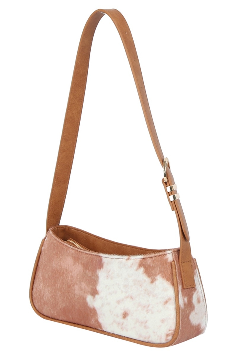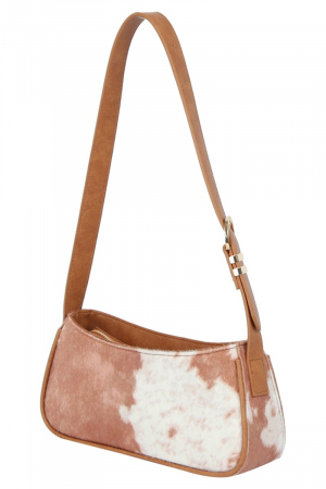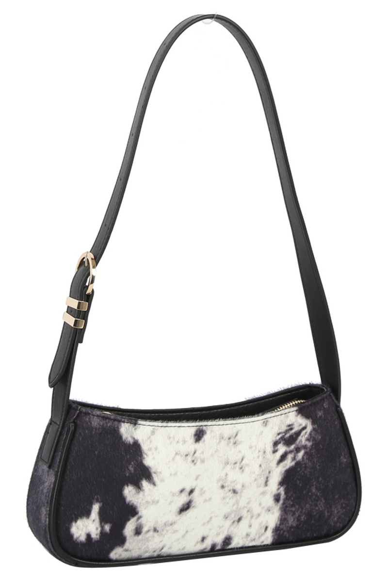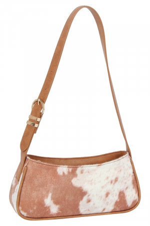 - This shoulder bag showcases a timeless calf hair cow printed rectangle style. Indulge in the artistry of accessorizing with this unique piece.