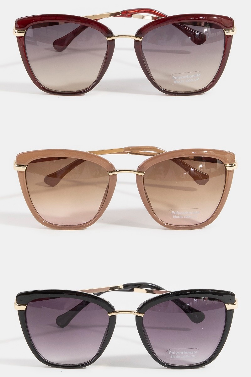 - This set of sunglasses brings a luxurious cat-eye double bar bridge sunglasses style. Indulge in the artistry of accessorizing with this unique piece.