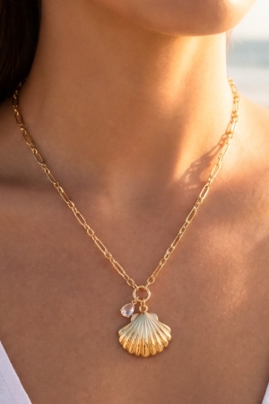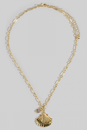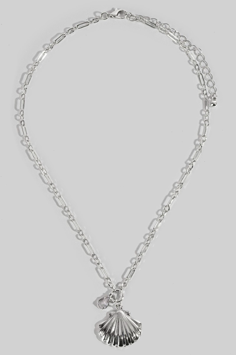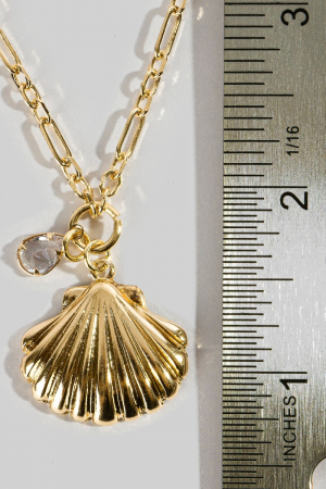 - This pendant necklace showcases a timeless chain link seashell and crystal style. Discover the perfect balance of functionality and fashion.