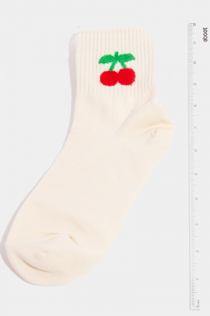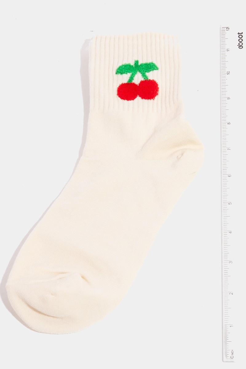 - This pair of socks displays a vibrant cherry embroidered beige style. Celebrate individuality with this pair of socks that effortlessly expresses your unique sense of style.